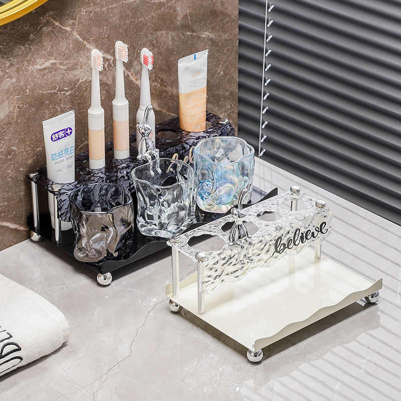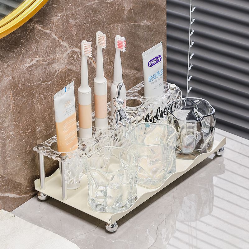가벼운 고급 칫솔 및 치약 보관함 욕실 조리대 전동 칫솔 홀더 유리 구강 세척제 컵 보관함