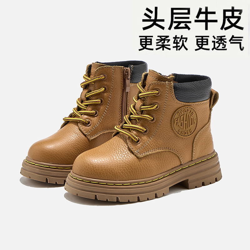 소가죽 아동 마틴 부츠 2025 가을 겨울 신상 남아용 빅옐로우 부츠 패션쇼 워크웨어 부츠 여아용 플리스 안감 숏부츠스토어 가기