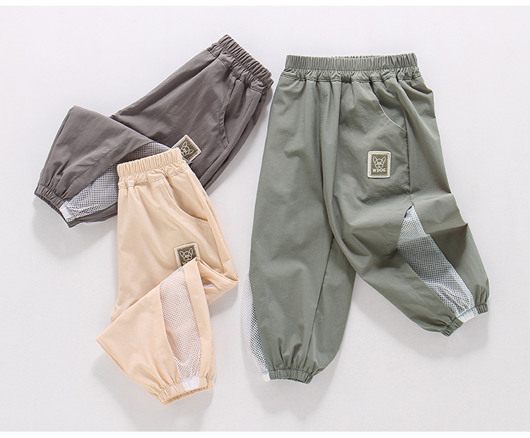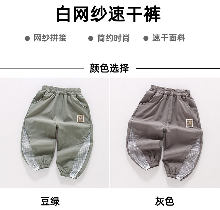 여름 신작 남아용 속건성 바지, 얇고 스타일리시한 스플라이싱, 통기성이 뛰어나고 신축성이 뛰어난 아동용 레깅스, 허리가 감싸인 캐주얼 바지스토어 가기