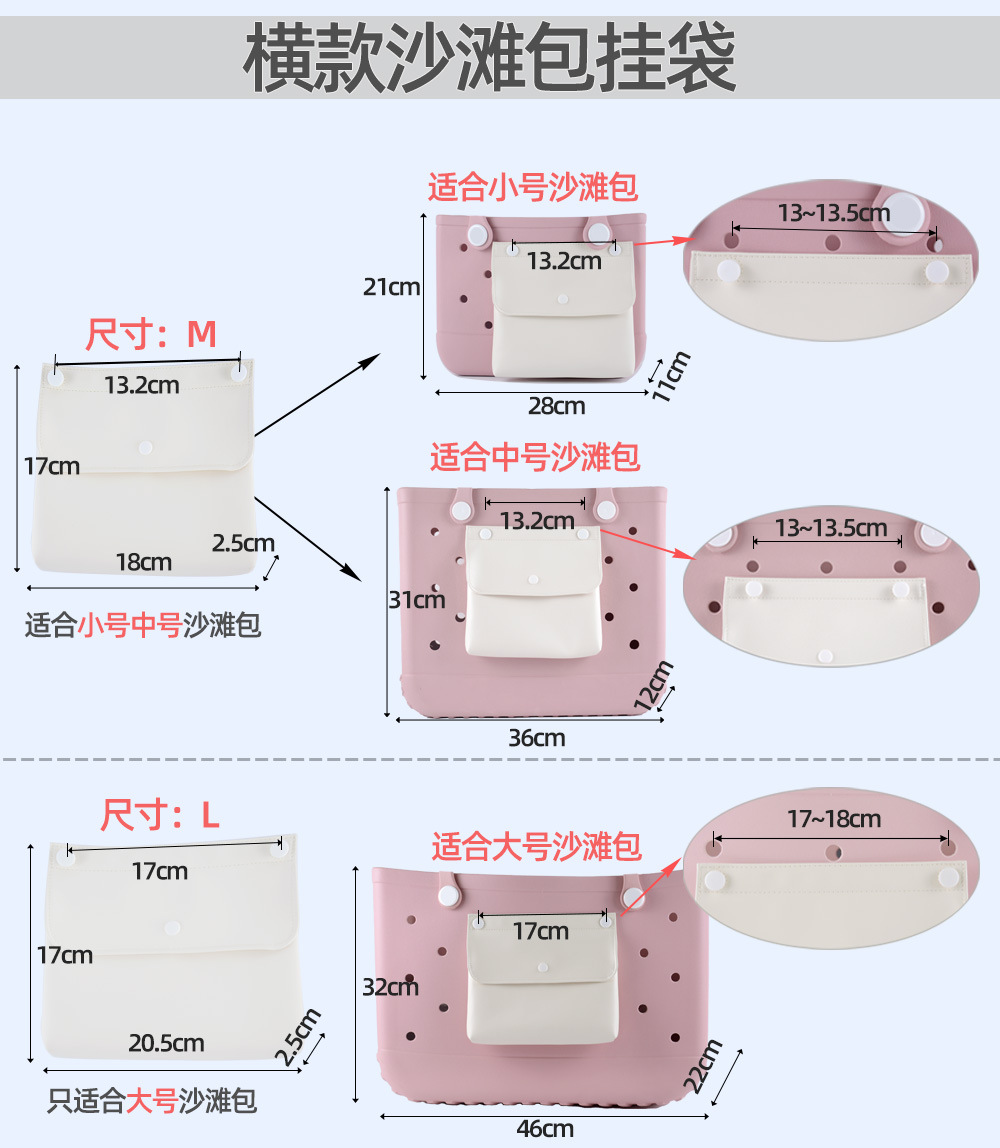 经典款适用于经典的沙滩洞洞包,中号款适用于中号和小号洞洞包,大号款只适用于大号洞洞包请在购买前检查您的包的型号。