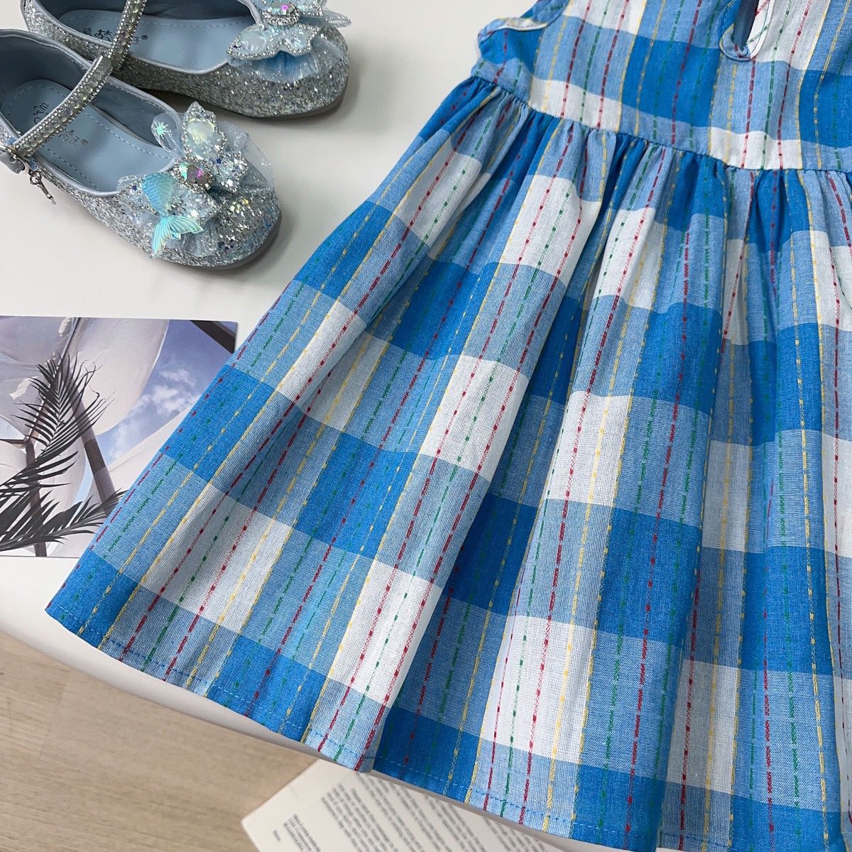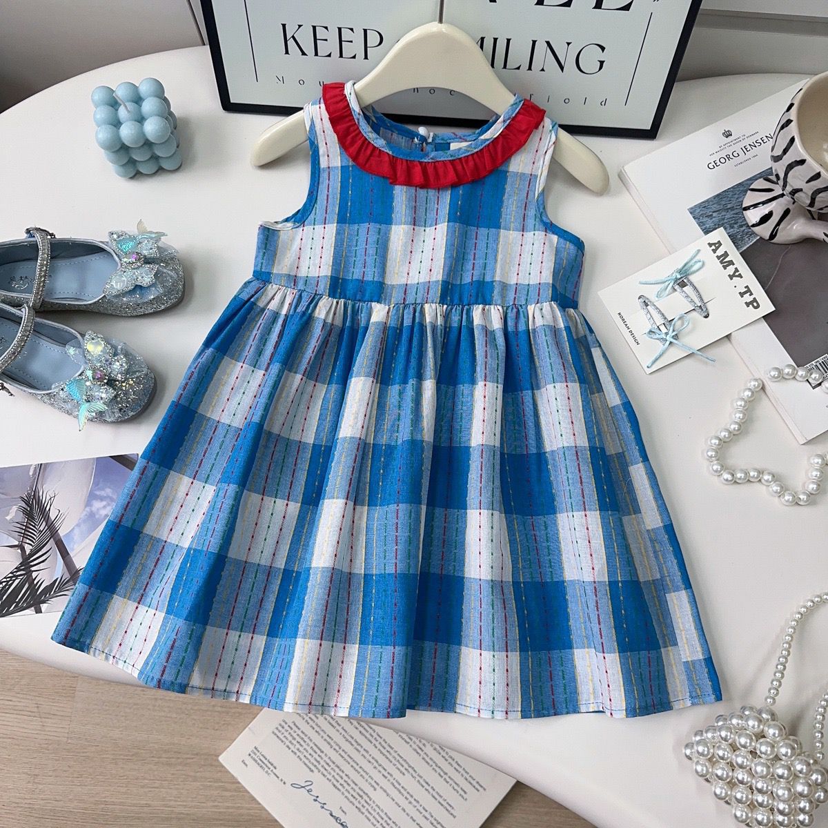 2025 여름 소녀의 원피스 격자 무늬 아기 소녀의 휴가 스타일 민소매 어린이 원피스 신선한 휴가 원피스스토어 가기