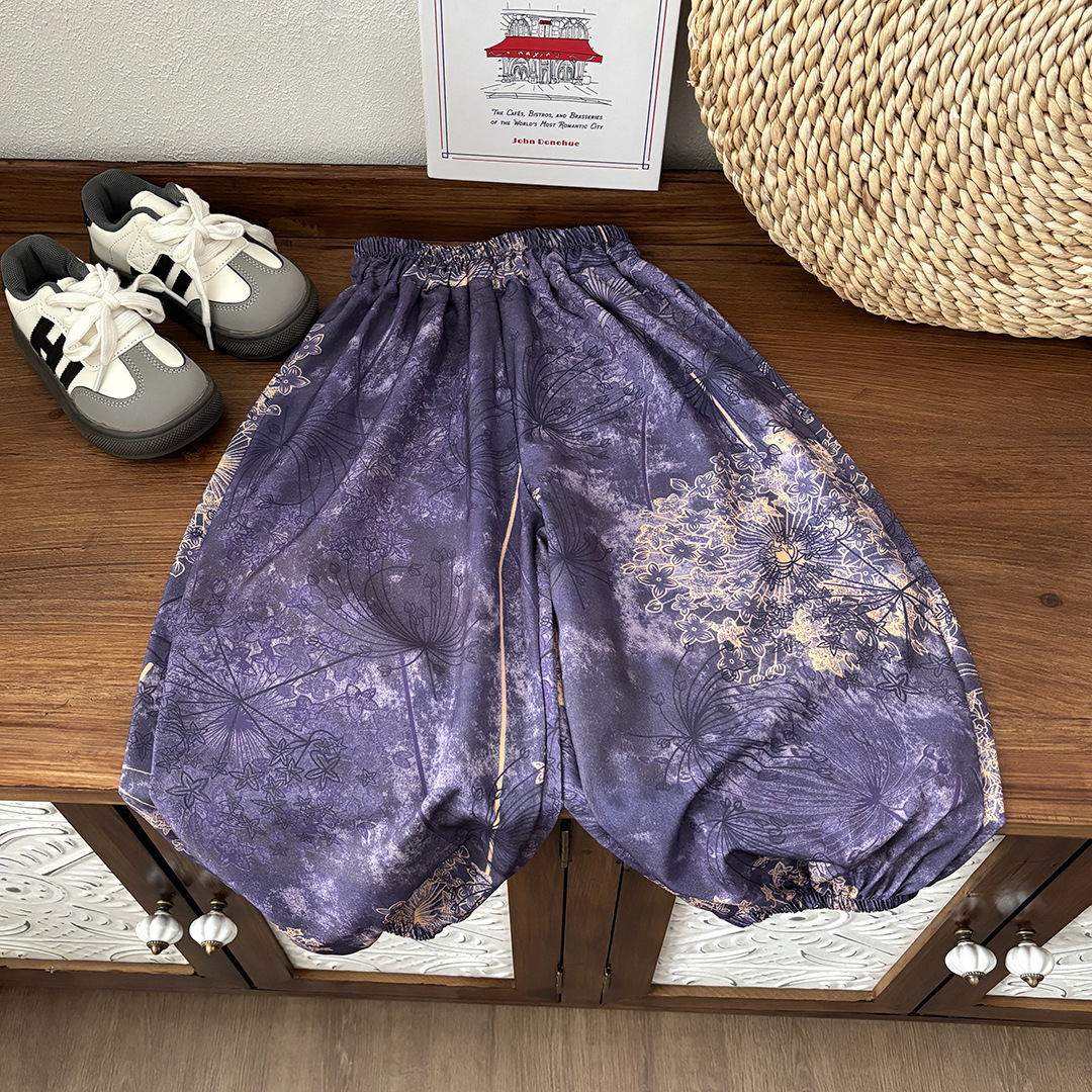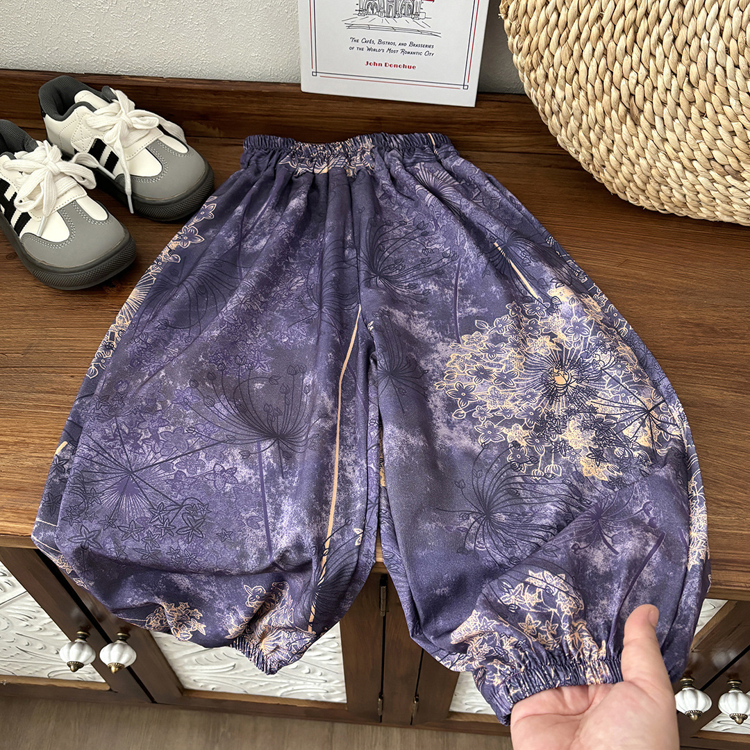 여름 어린이 캐주얼 안티 모기 바지 소년 소녀 블루머 아기 얇은 화이트 타워 보라색 꽃 바지 한 조각 판매