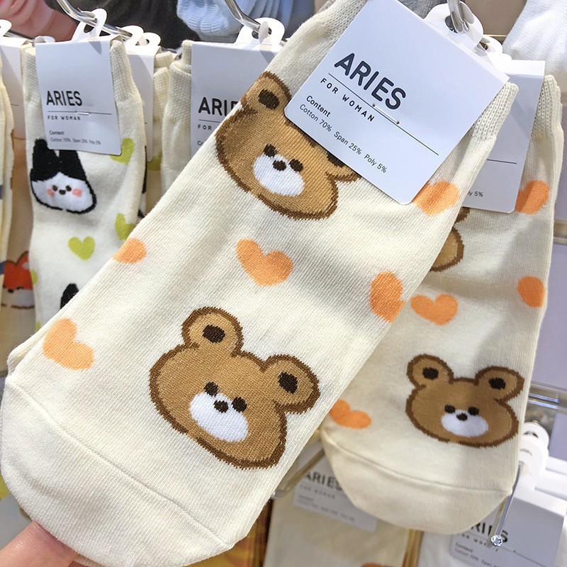 [재고 있음] ARIES 봄 여름 신작 한국 양말 귀여운 만화 소녀 양말 로우 웨이스트 짧은 튜브 캐주얼면 양말스토어 가기