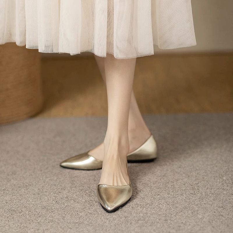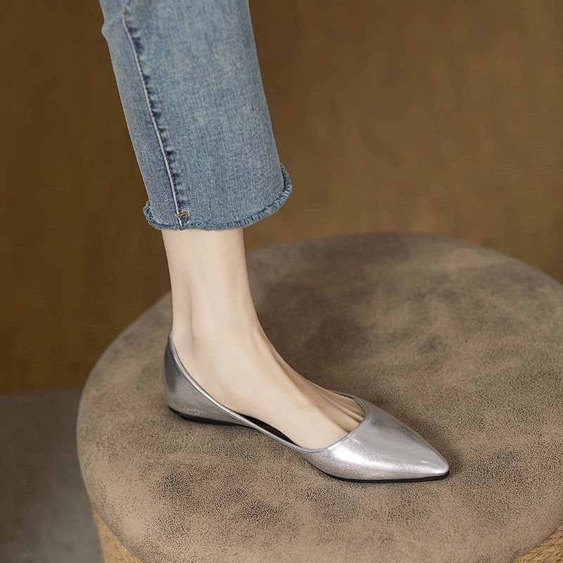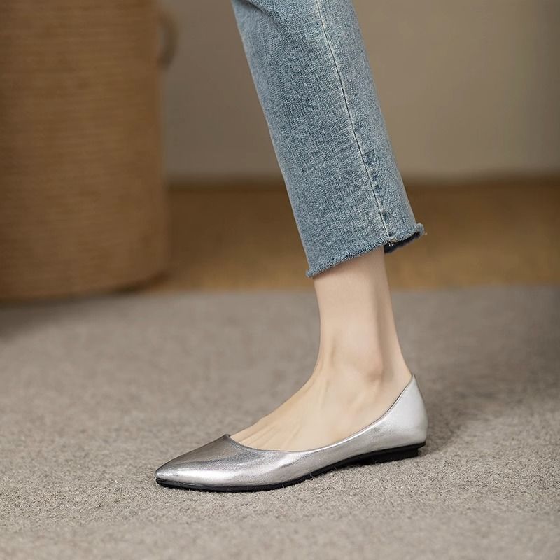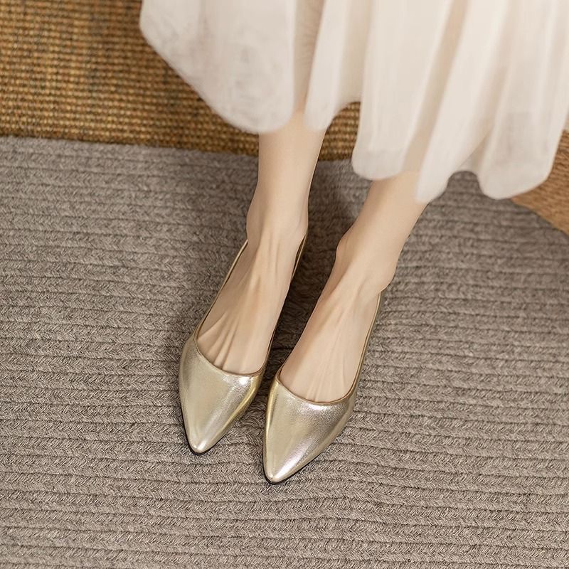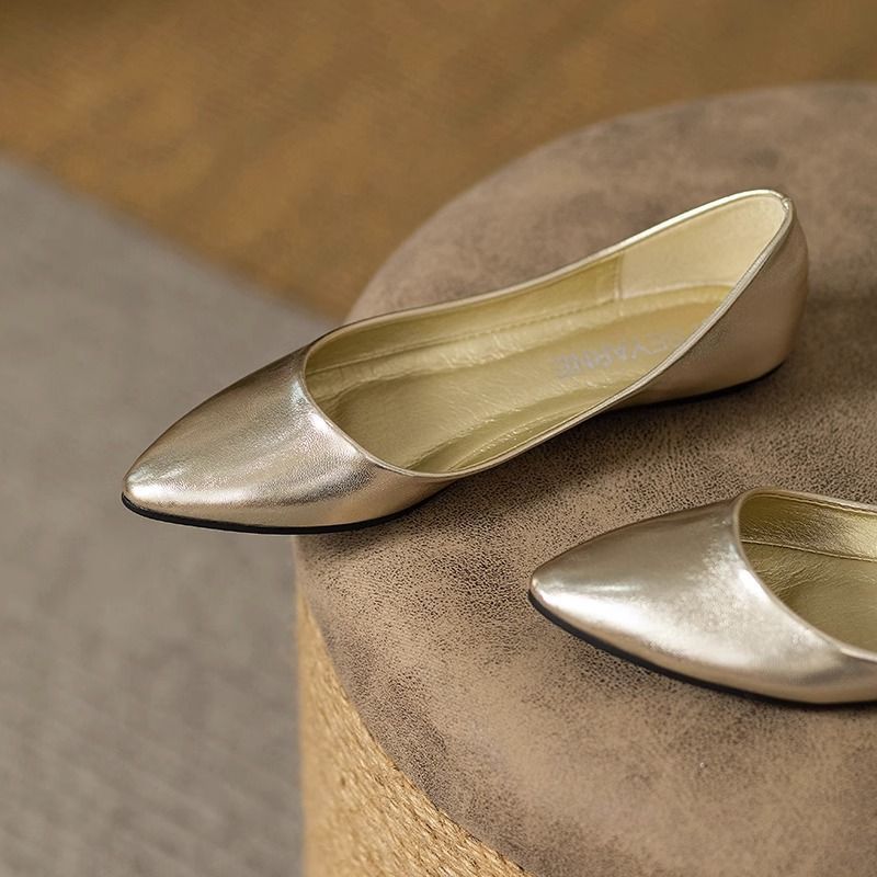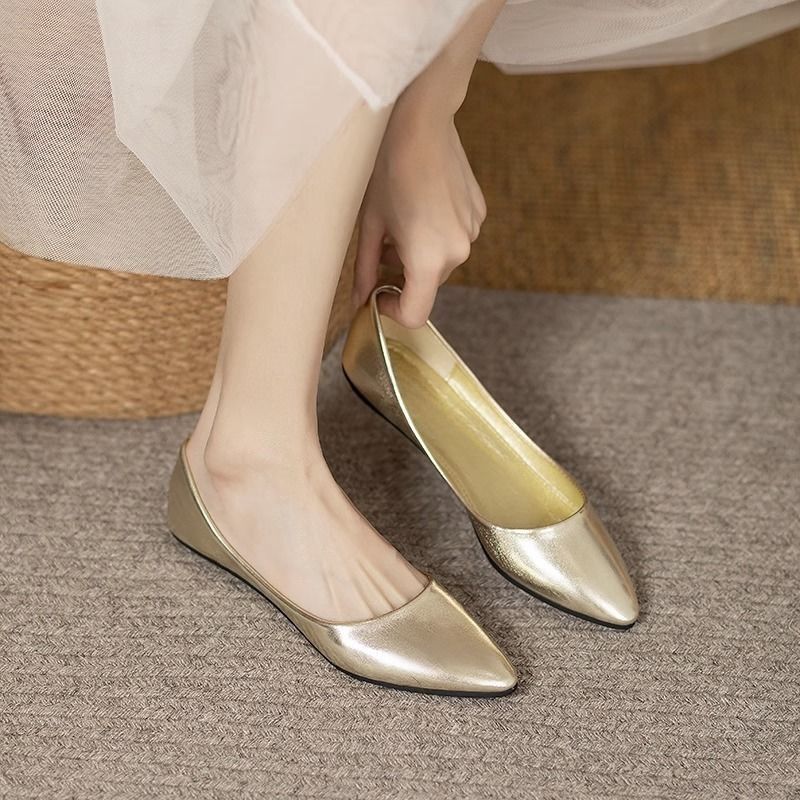 프랑스 봄 여름 신상 포인티드 토 가벼운 입구 홍콩 스타일 부드러운 가죽 신발 여성용 통기성 통근 플랫 소형 가죽 신발