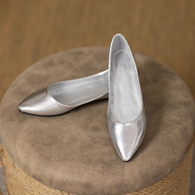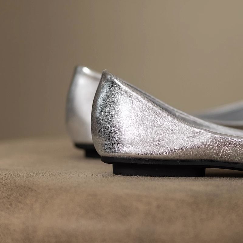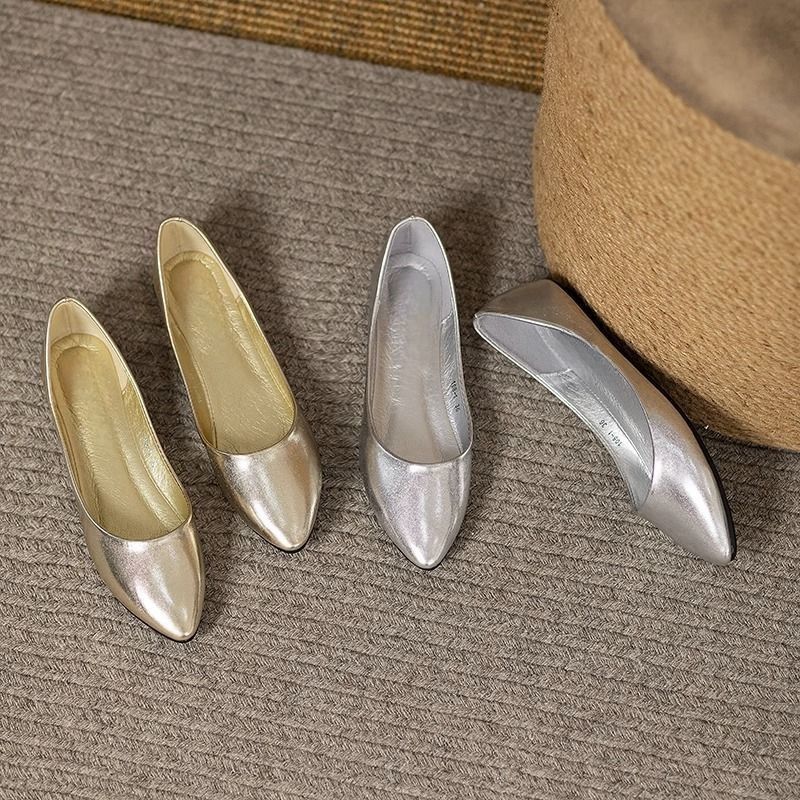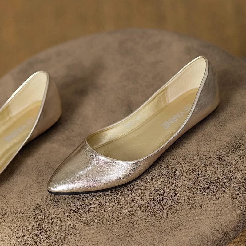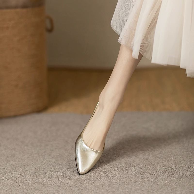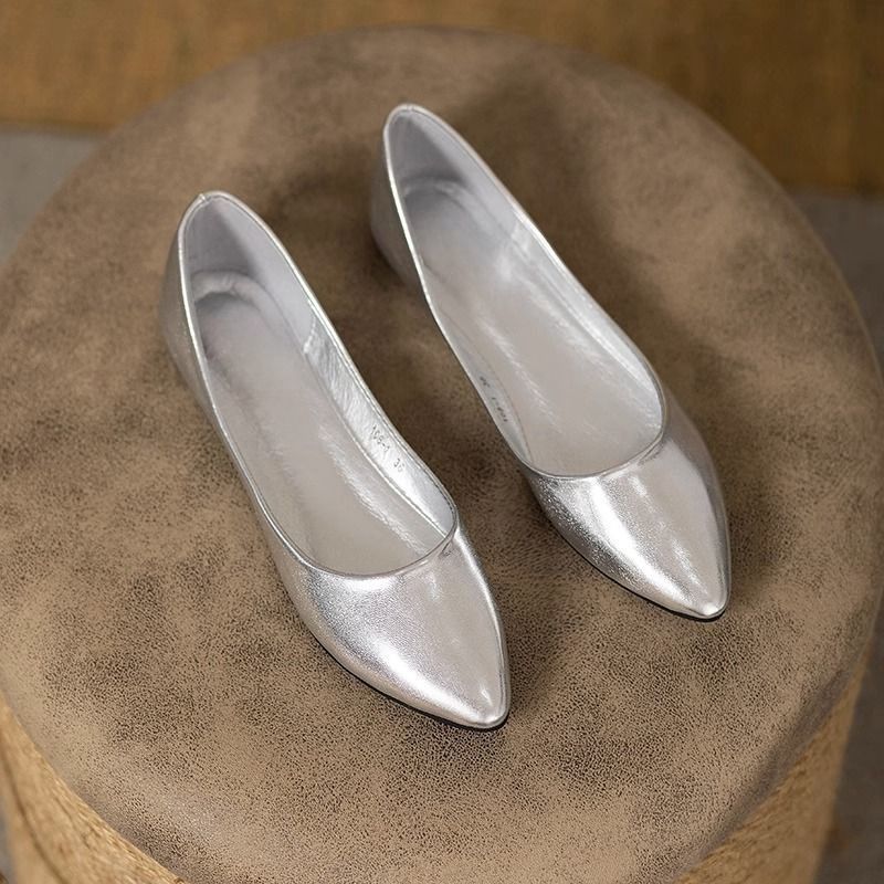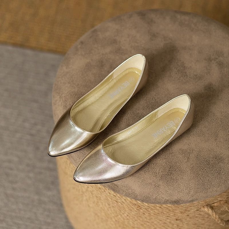프랑스 봄 여름 신상 포인티드 토 가벼운 입구 홍콩 스타일 부드러운 가죽 신발 여성용 통기성 통근 플랫 소형 가죽 신발