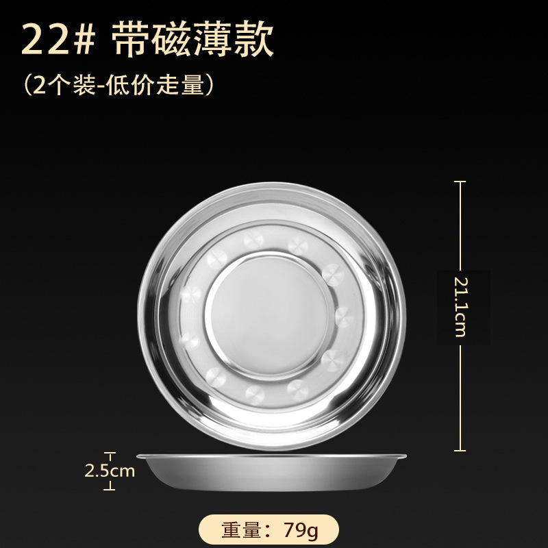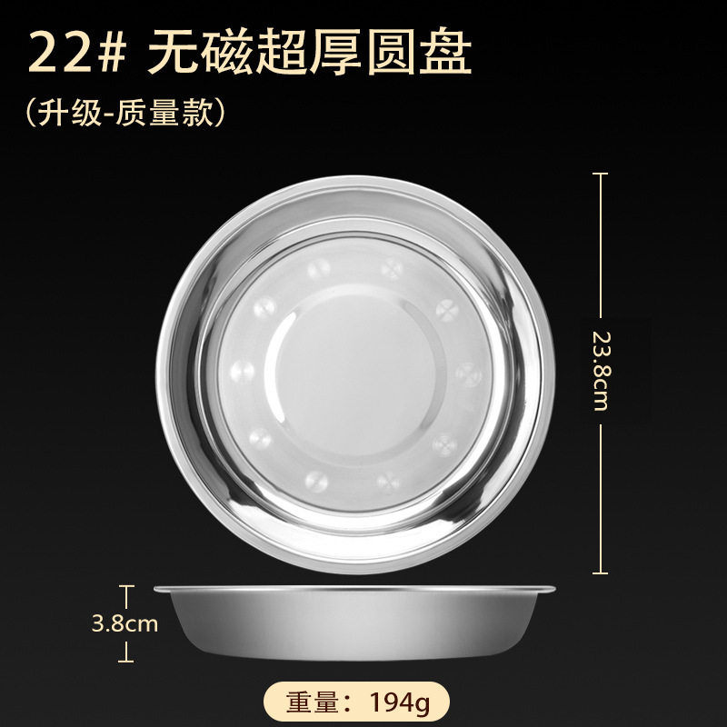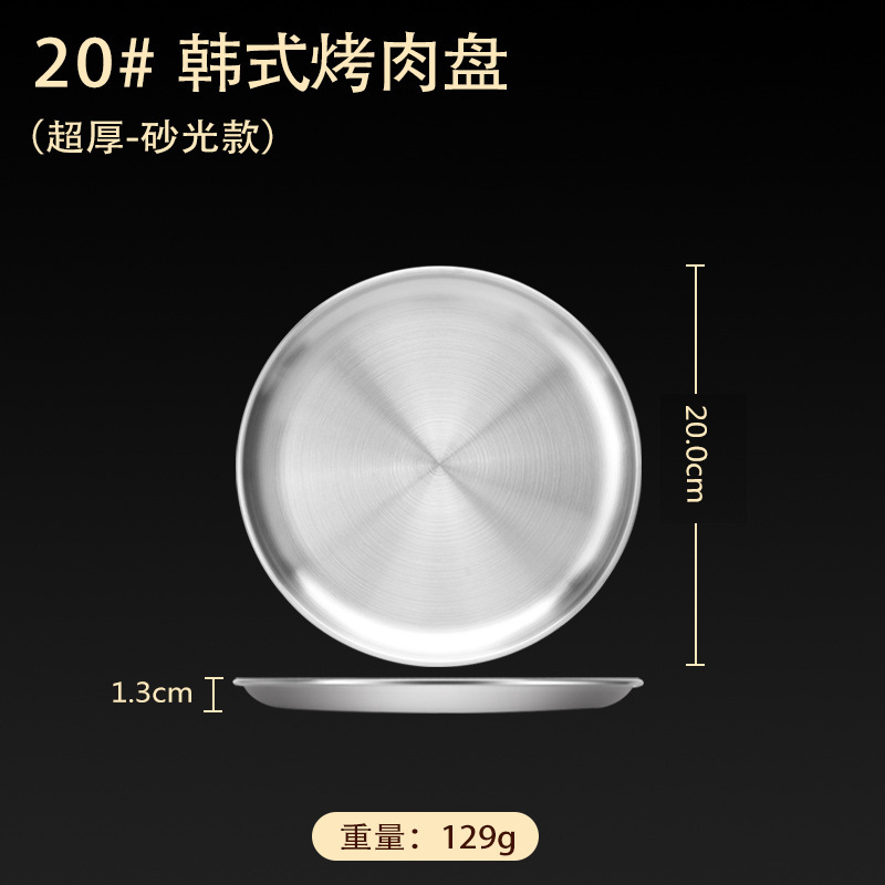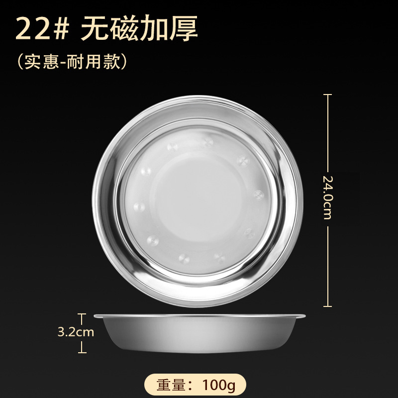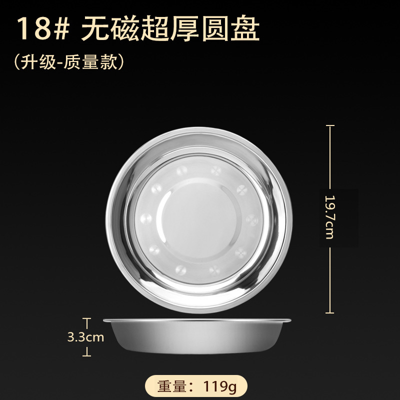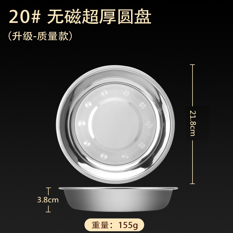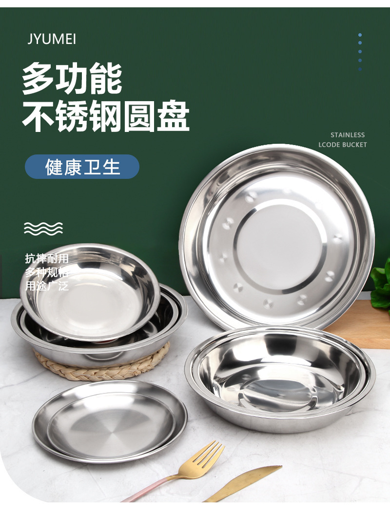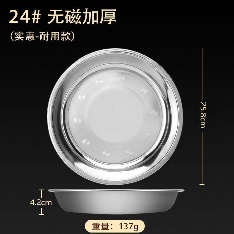 스테인레스 스틸 접시 가정용 두꺼운 원형 접시 플랫 접시 철판 얕은 접시 디너 접시 트레이 반찬 접시 상업용 대외 무역