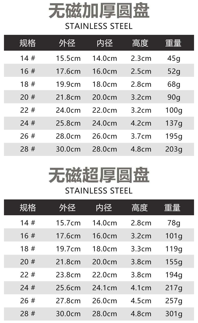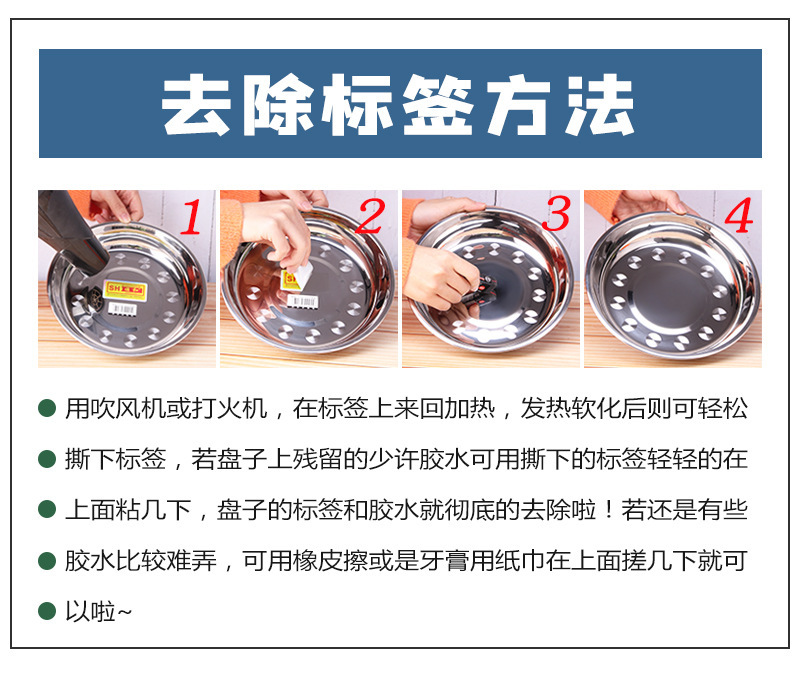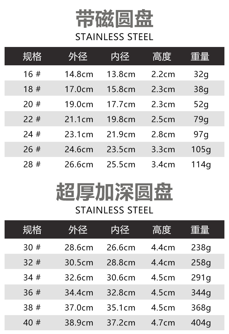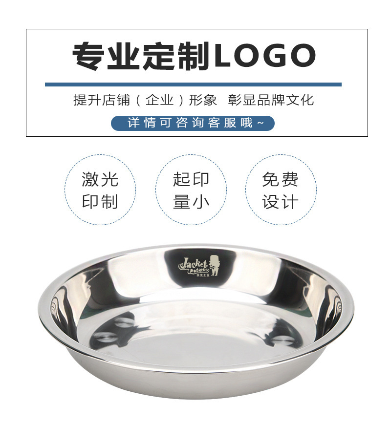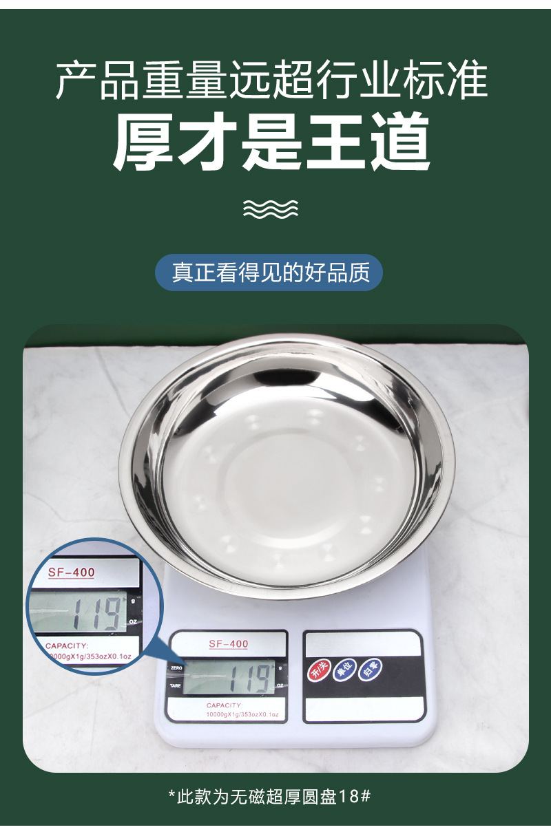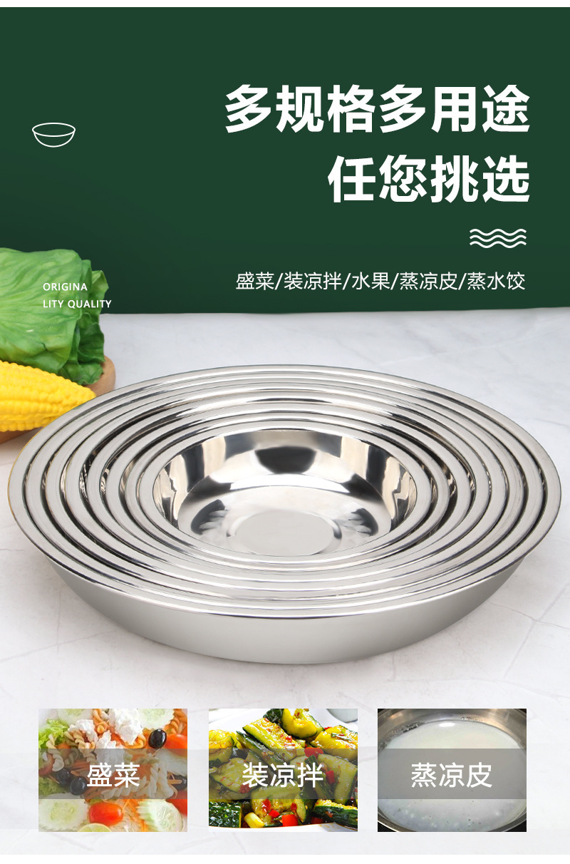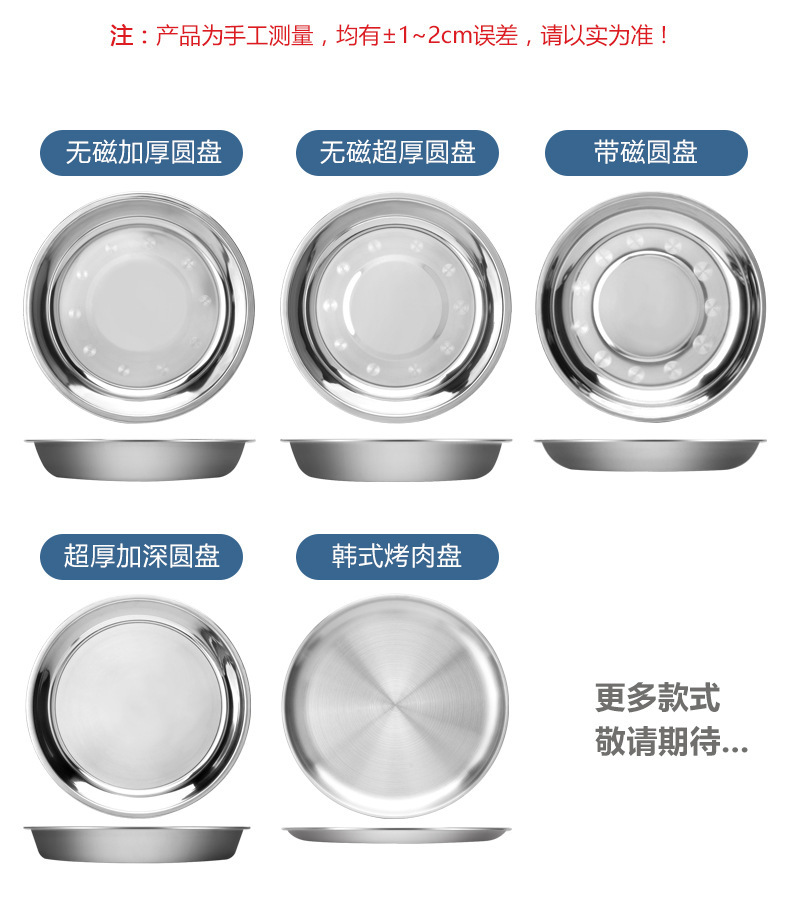 스테인레스 스틸 접시 가정용 두꺼운 원형 접시 플랫 접시 철판 얕은 접시 디너 접시 트레이 반찬 접시 상업용 대외 무역