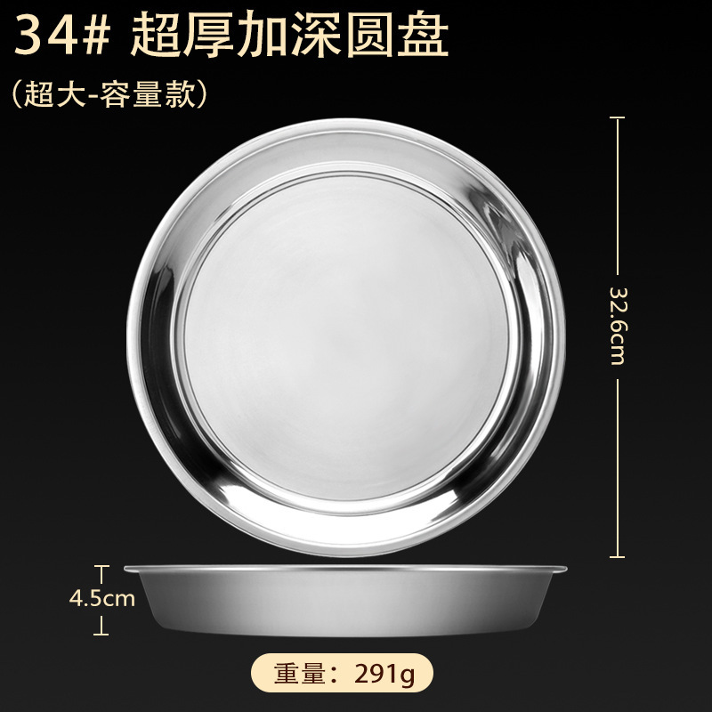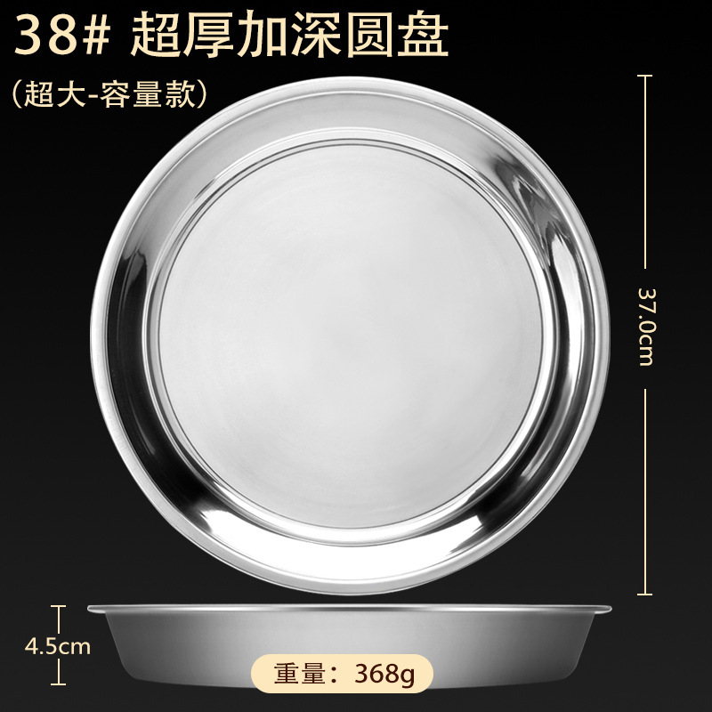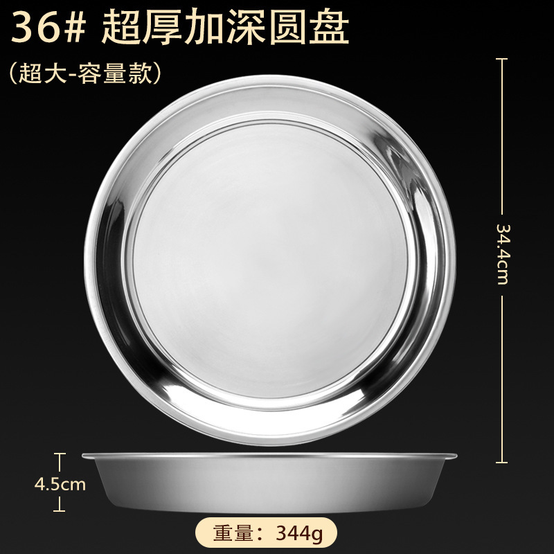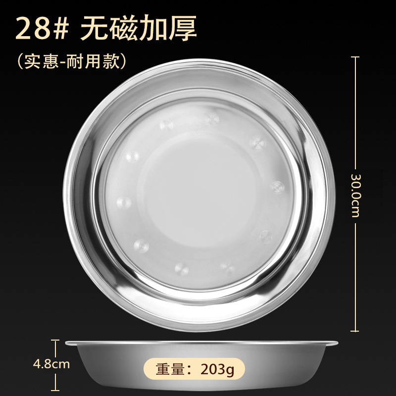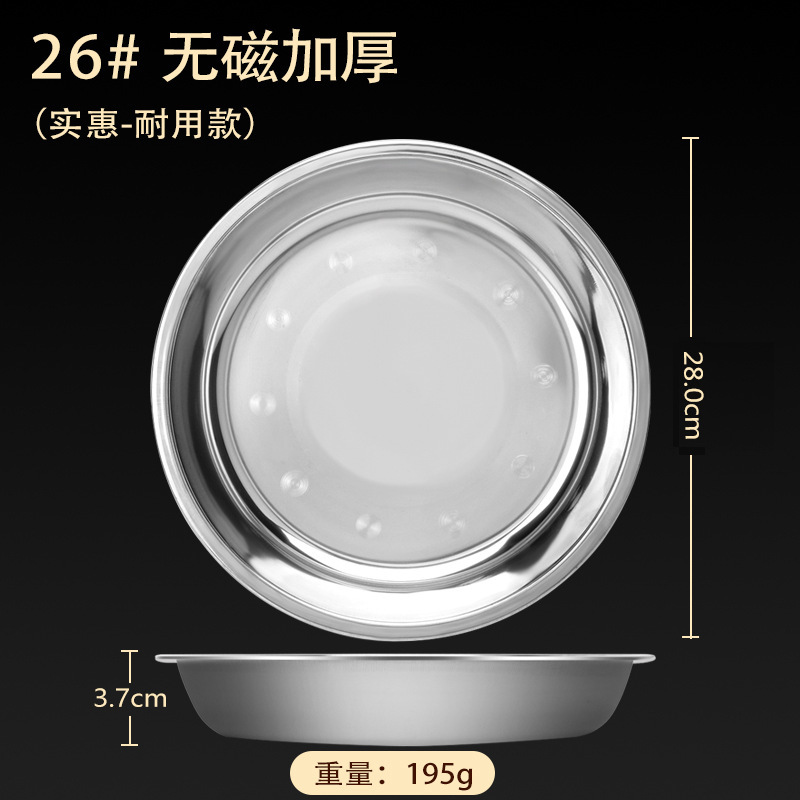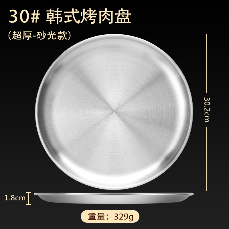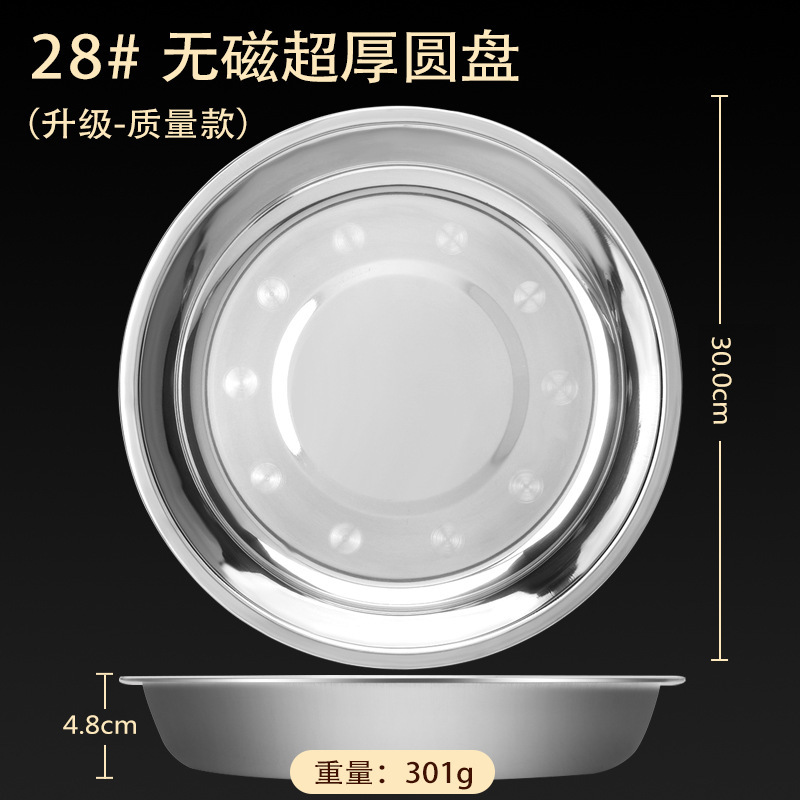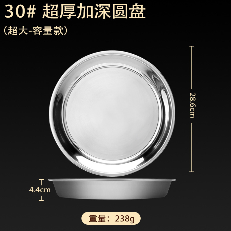 스테인레스 스틸 접시 가정용 두꺼운 원형 접시 플랫 접시 철판 얕은 접시 디너 접시 트레이 반찬 접시 상업용 대외 무역스토어 가기