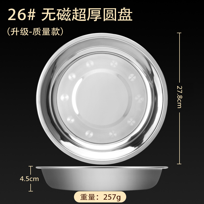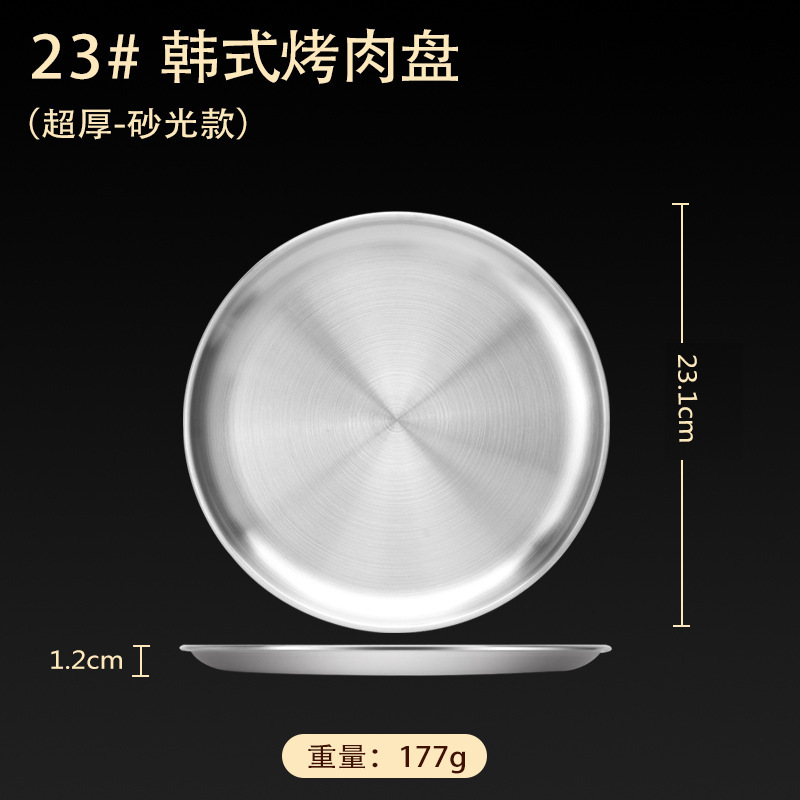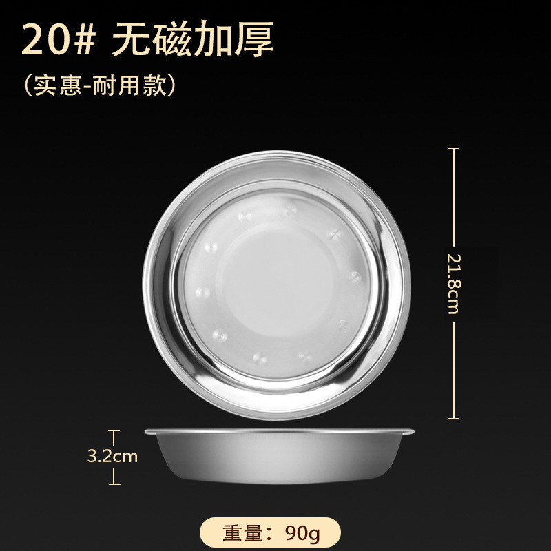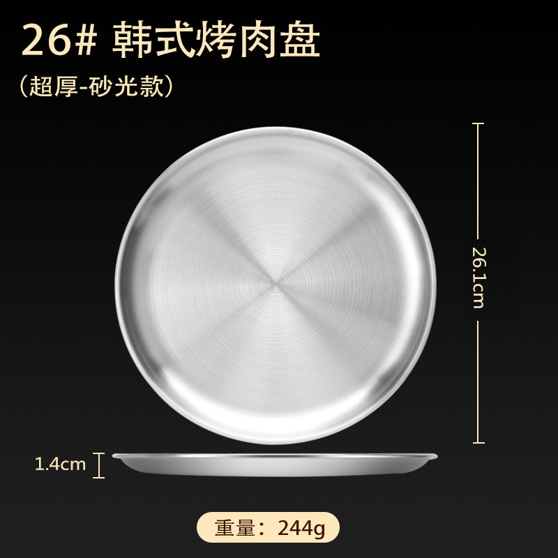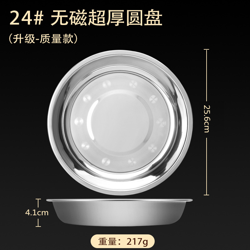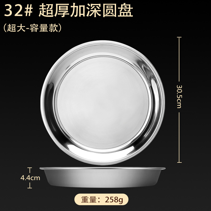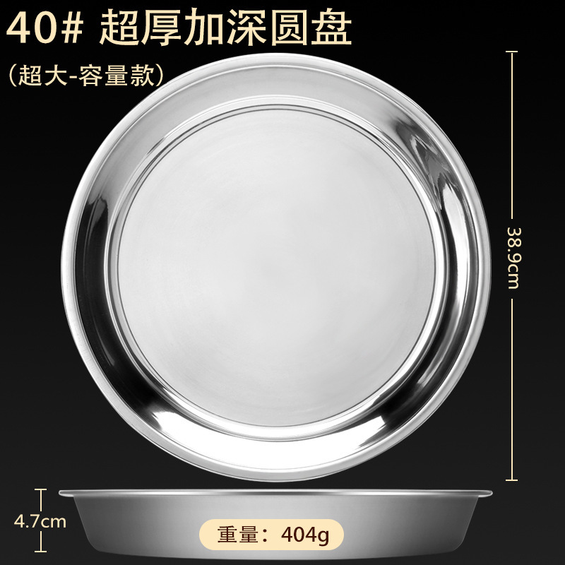스테인레스 스틸 접시 가정용 두꺼운 원형 접시 플랫 접시 철판 얕은 접시 디너 접시 트레이 반찬 접시 상업용 대외 무역스토어 가기