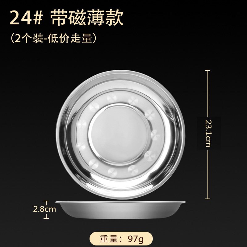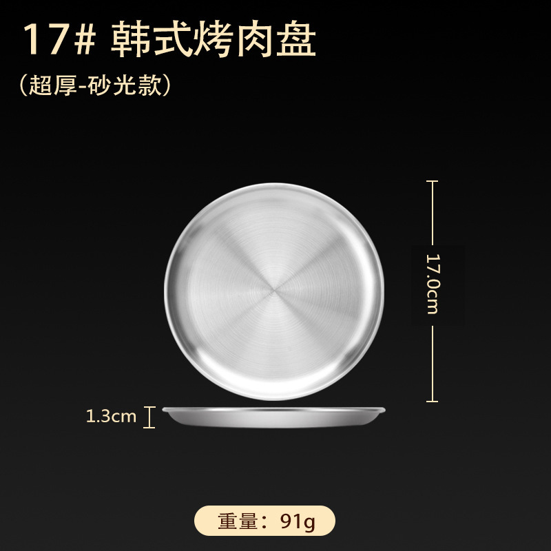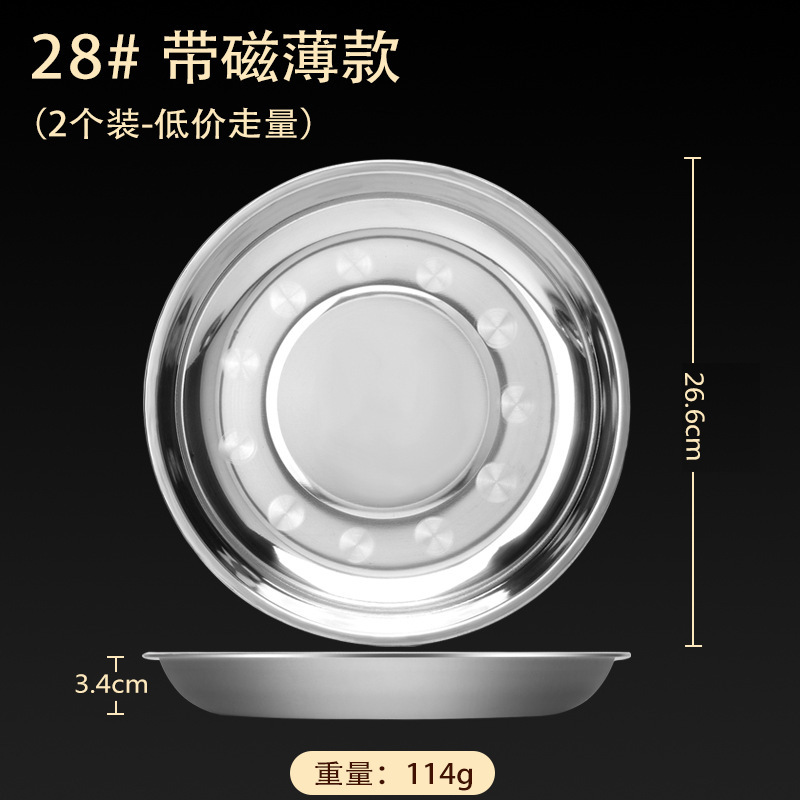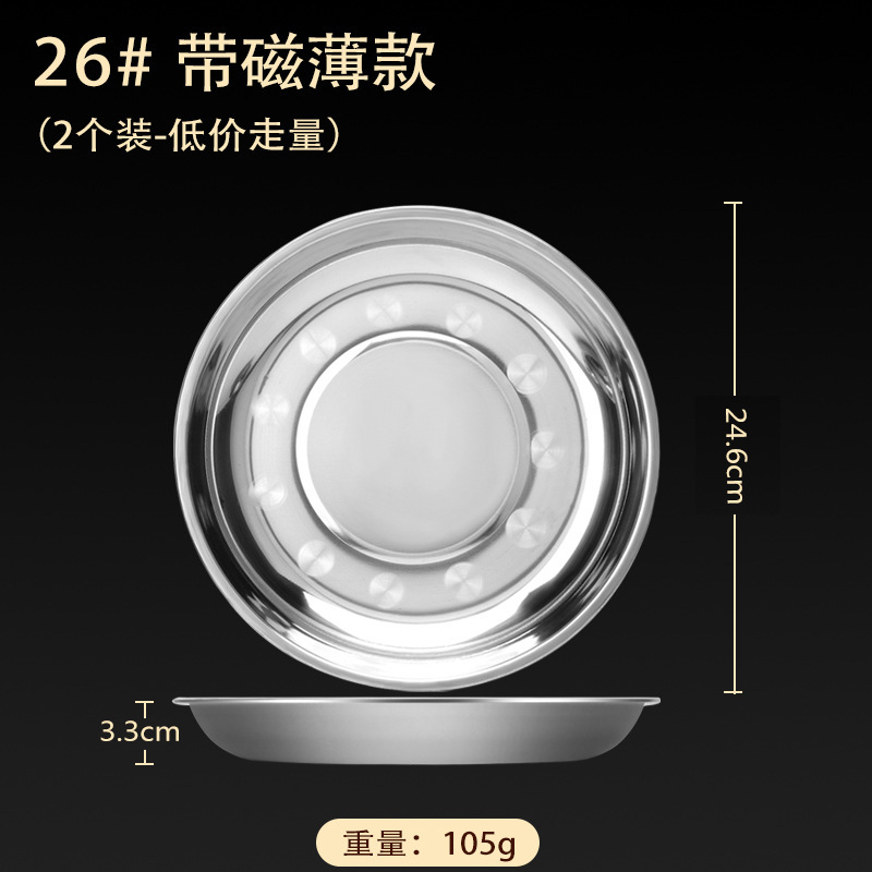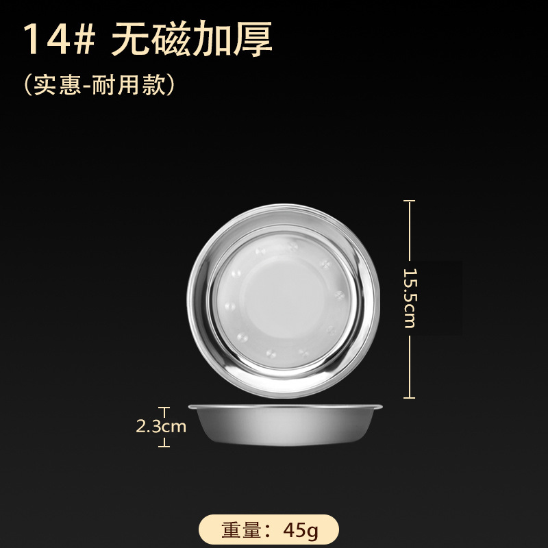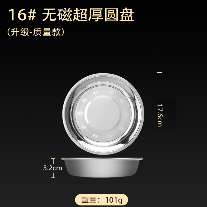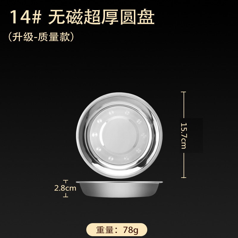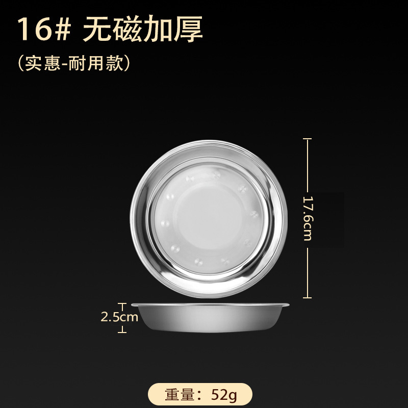 스테인레스 스틸 접시 가정용 두꺼운 원형 접시 플랫 접시 철판 얕은 접시 디너 접시 트레이 반찬 접시 상업용 대외 무역스토어 가기