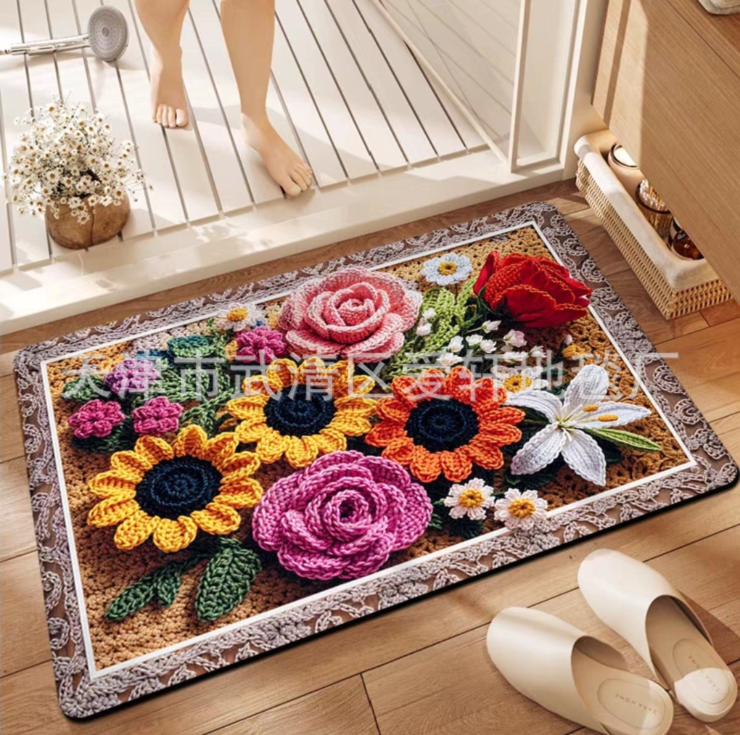 국경 간 Amazon 입구 문 바닥 매트, 얼룩 방지 및 관리가 쉬운 미끄럼 방지 매트, 욕실 문, 침실 침대 옆 꽃 발 매트