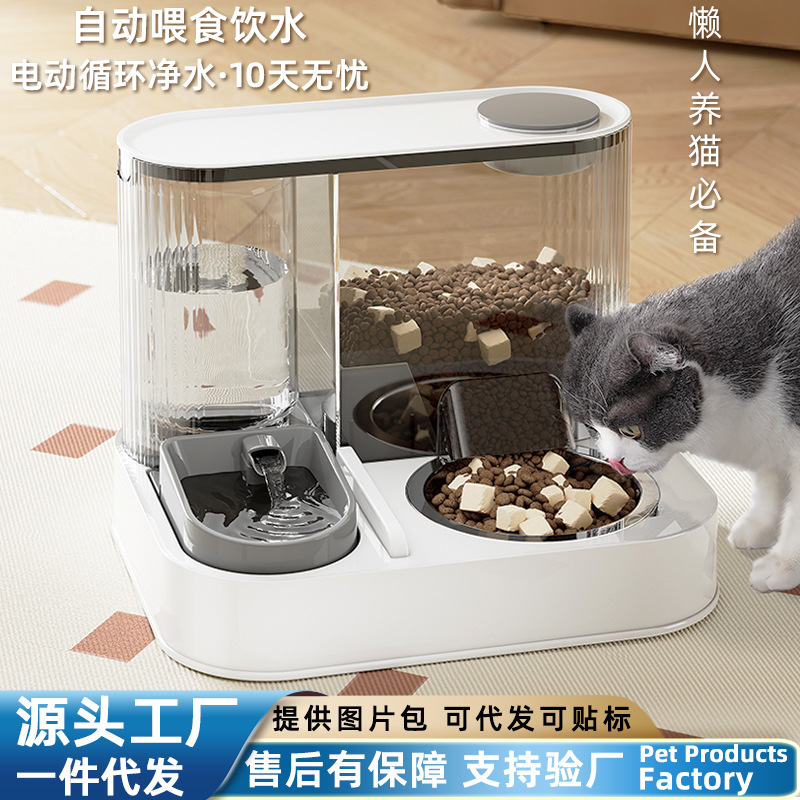 새로운 고양이 자동 급식기, 물그릇, 물과 사료 일체형 고양이 그릇, 정수기, 투인원 애완동물 급식 그릇