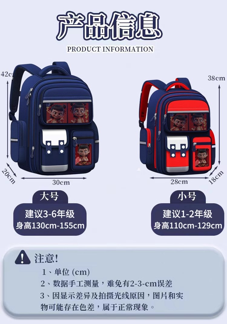 Na Zha schoolbag 초등학교 소년 소녀 1, 2, 3, 4, 5, 6 학년 대용량 어린이 schoolbag 척추 보호 배낭