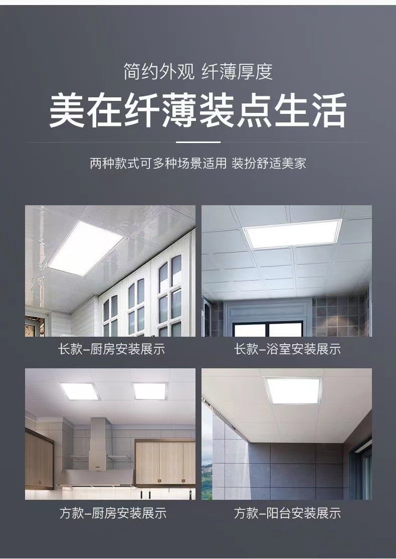 Lei Shiji 통합 천장 LED 조명 주방 조명 평면 패널 조명 욕실 내장형 직사각형 30x60 천장 조명
