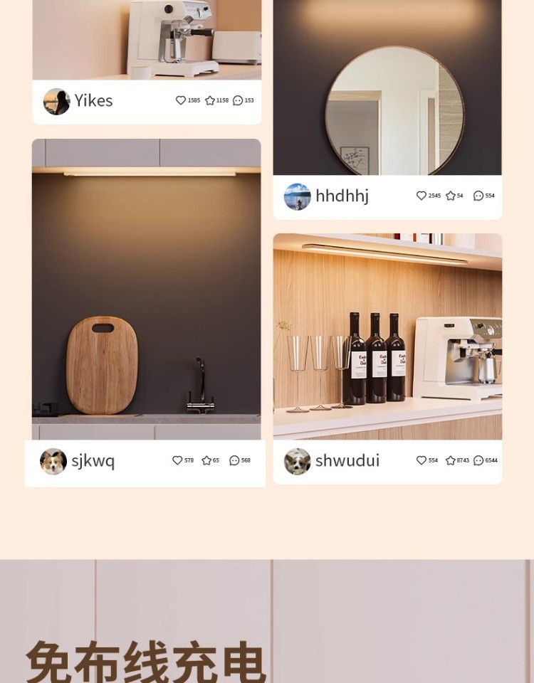 • 화이트힐스타일 - 초박형 40CM 3색 디밍 [센서/상시켜짐/충전/자기접착]