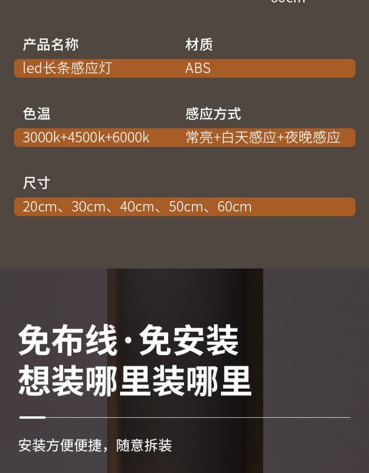 • 백색 투광 모델 - 초박형 80CM 3색 디밍 [유도/상시켜짐/충전/자기 페이스트]