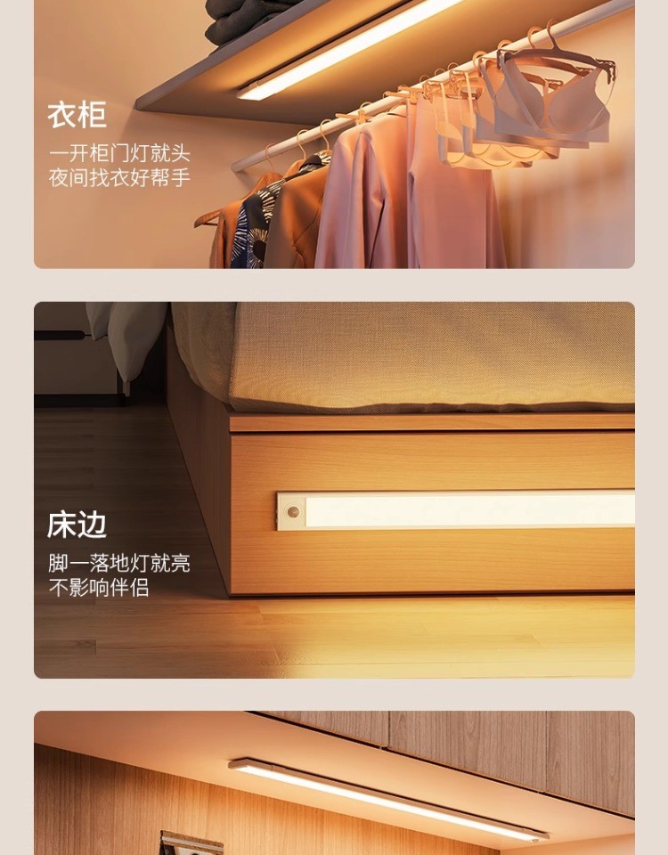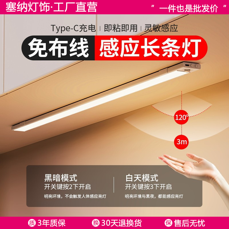 Led 인체 유도 야간 조명 지능형 충전식 홈 침대 옆 무선 통로 벽 배선없는 스트립 조명스토어 가기