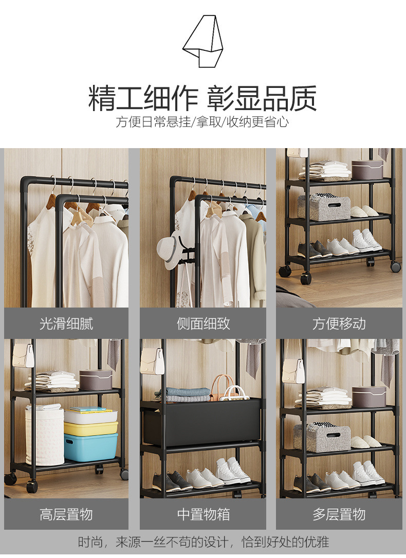 옷걸이, 간이옷걸이, 코트걸이, 가정용 침실 침대 옆 옷걸이, 임대주택 수납 및 수납 일체형 랙스토어 가기