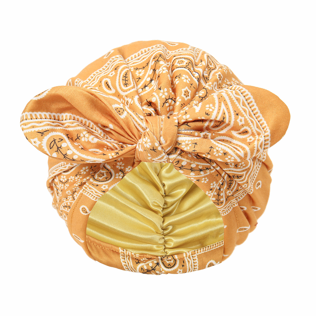 유럽과 미국의 새로운 스타일 토끼 귀 매듭 나비 모자 캐슈 컬러 새틴 안감 터번 모자 멀티 컬러 모자 재고 있음스토어 가기
