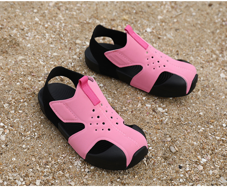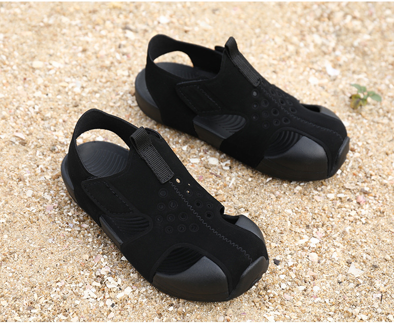 공장 맞춤형 어린이 발가락 발 보호 벨크로 샌들, 유아용 부드러운 밑창 미끄럼 방지 비치 샌들, 유아용 나막신