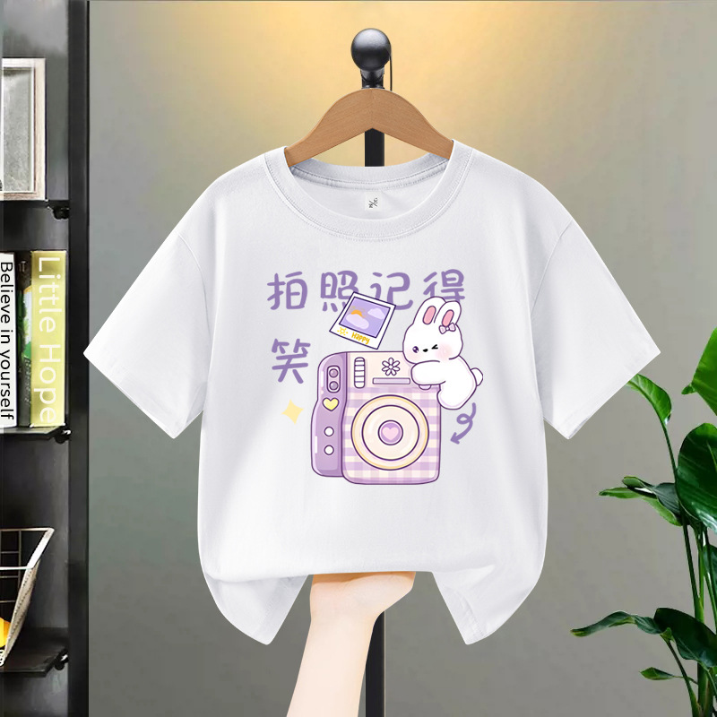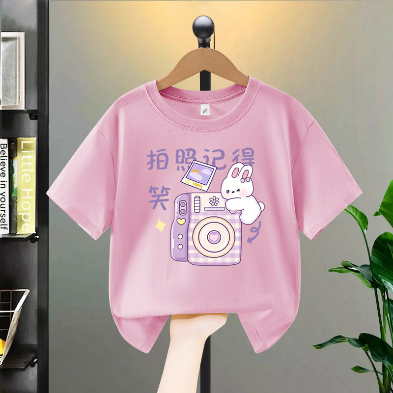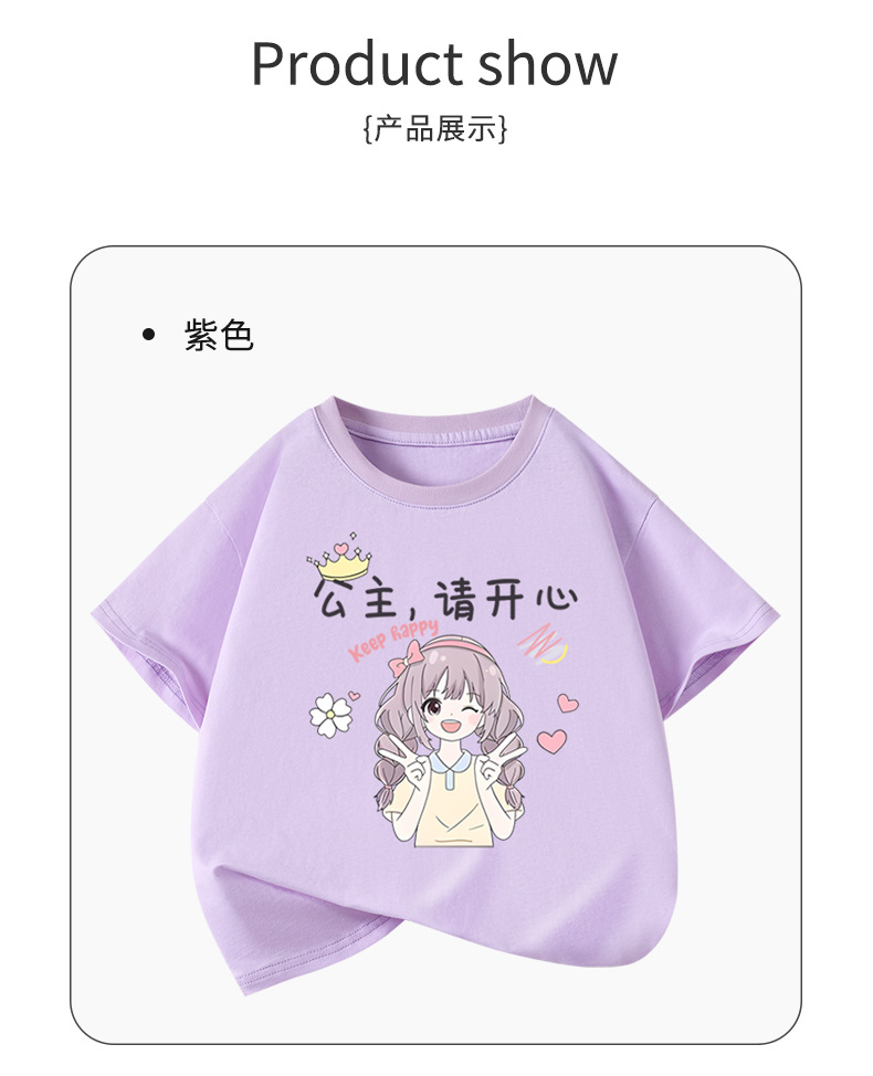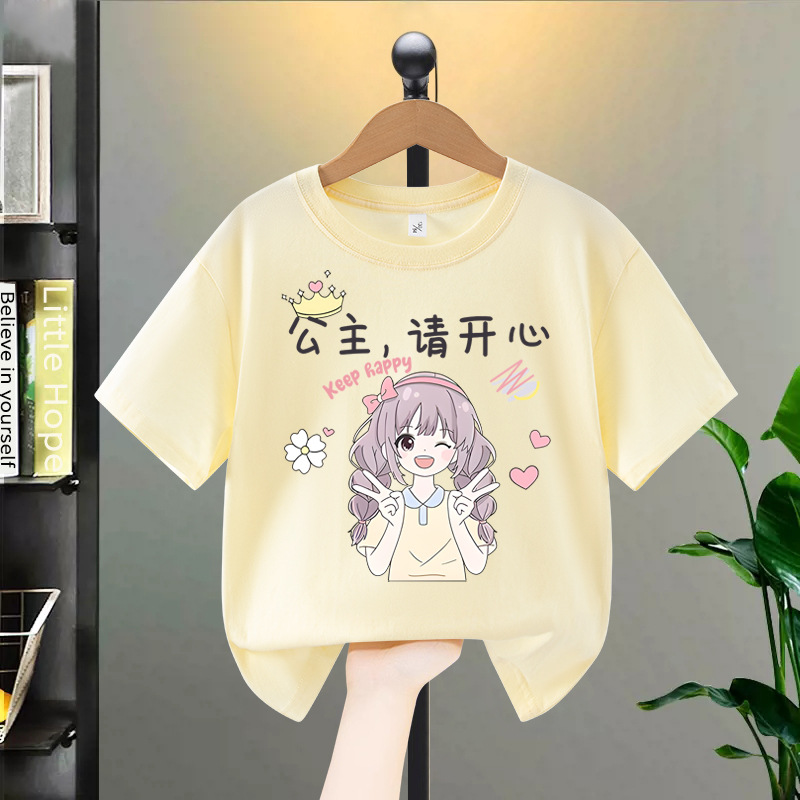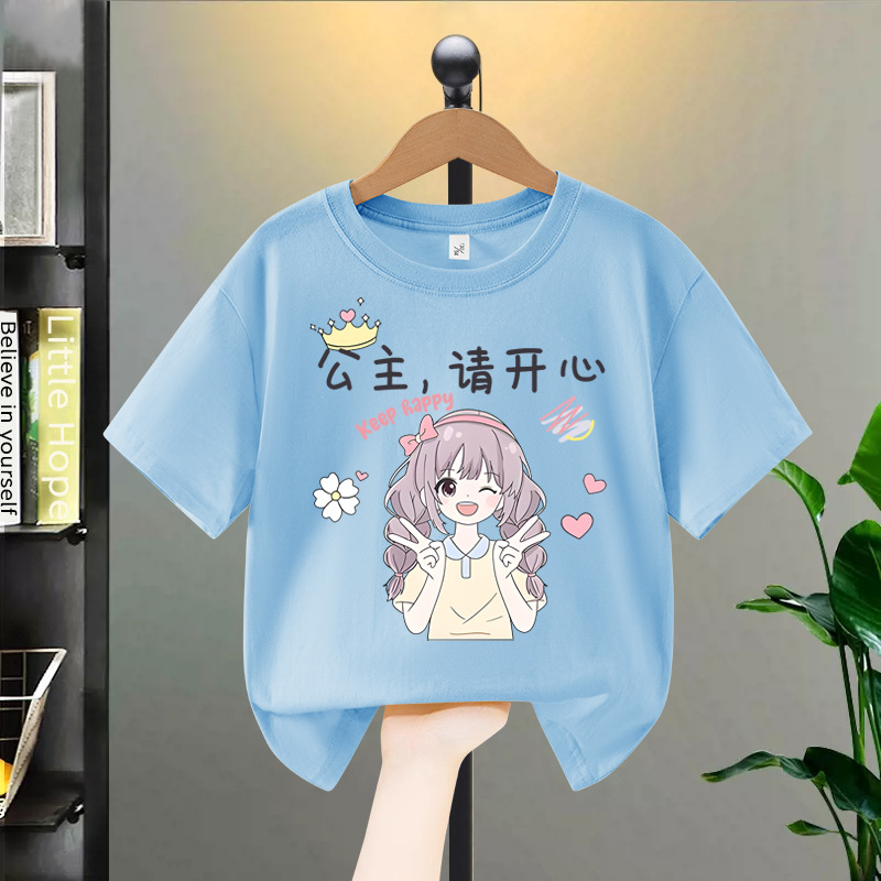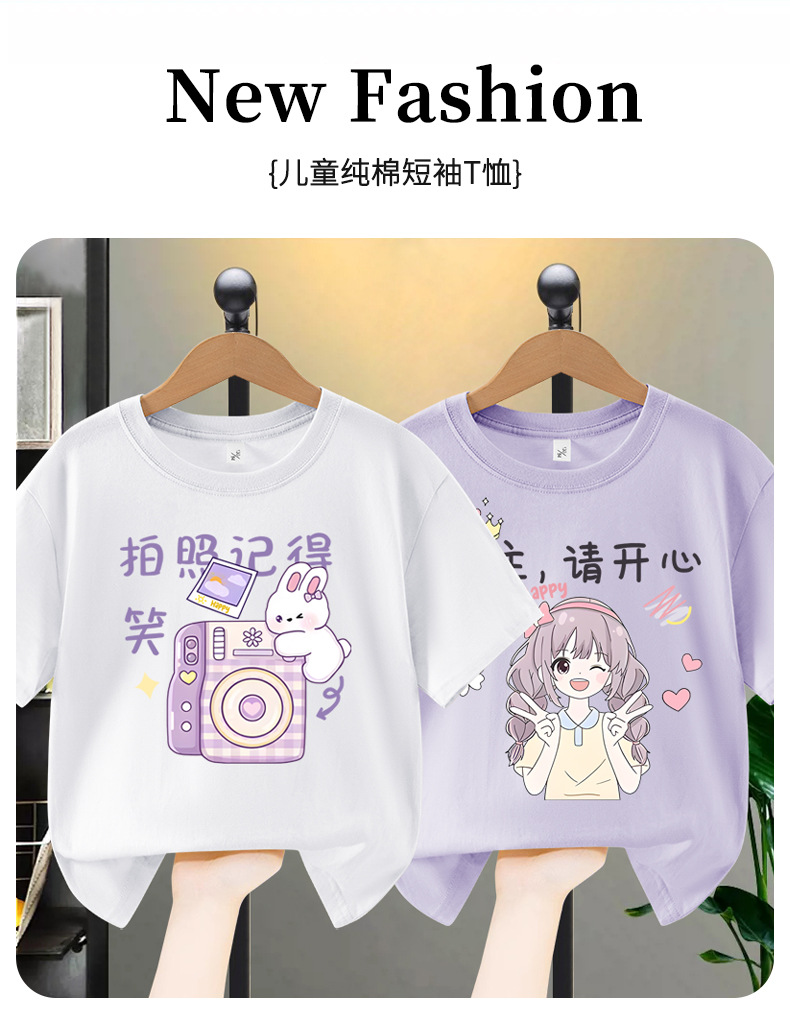 소녀 반팔 티셔츠 여름 새로운 스타일 서양식 중견 어린이 여름 원피스 귀여운 소녀의 순수한면 만화 티셔츠 탑 트렌디스토어 가기