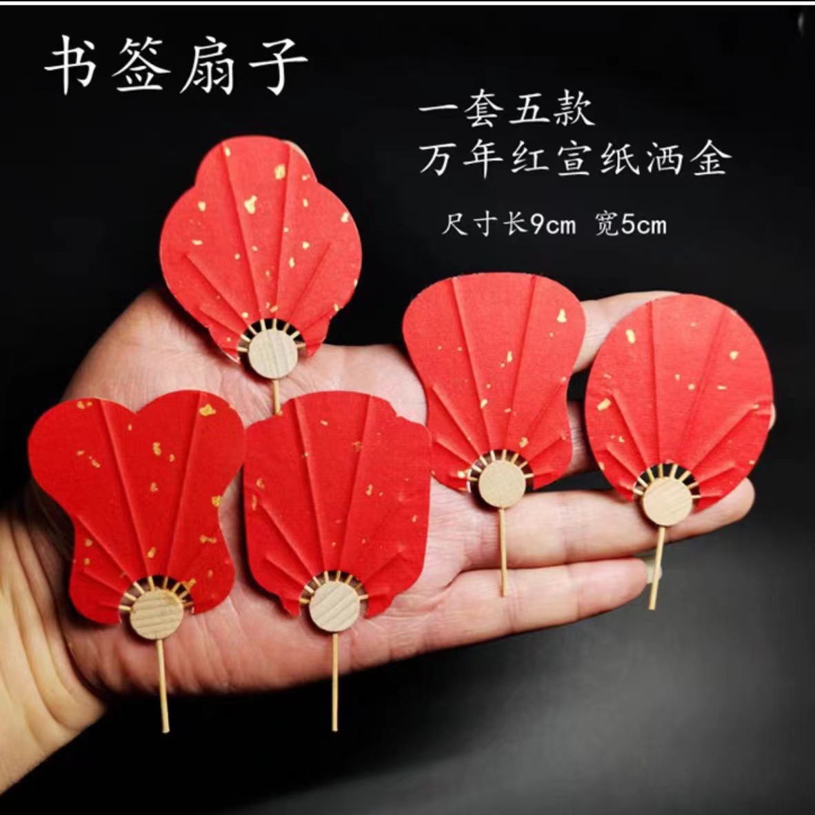 • 랜덤 모양의 부채 책갈피 [빨간색 금박]