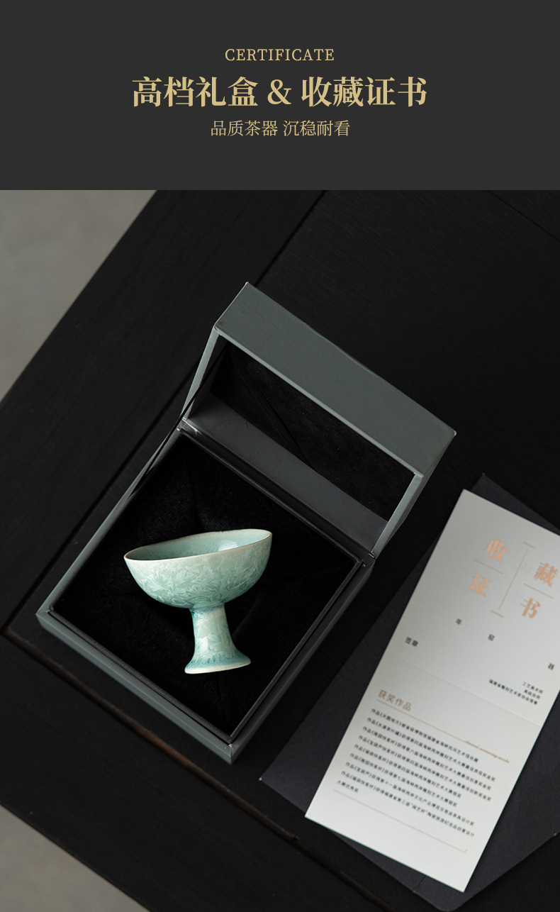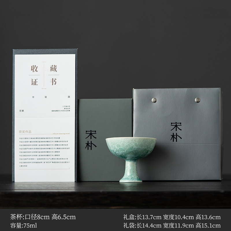 마스터 송 Pu Su Yang Ye 크리스탈 유약 크리스탈 플라워 마스터 컵 차 시음 컵 녹색 얼음 꽃 고블 개인 선물 상자