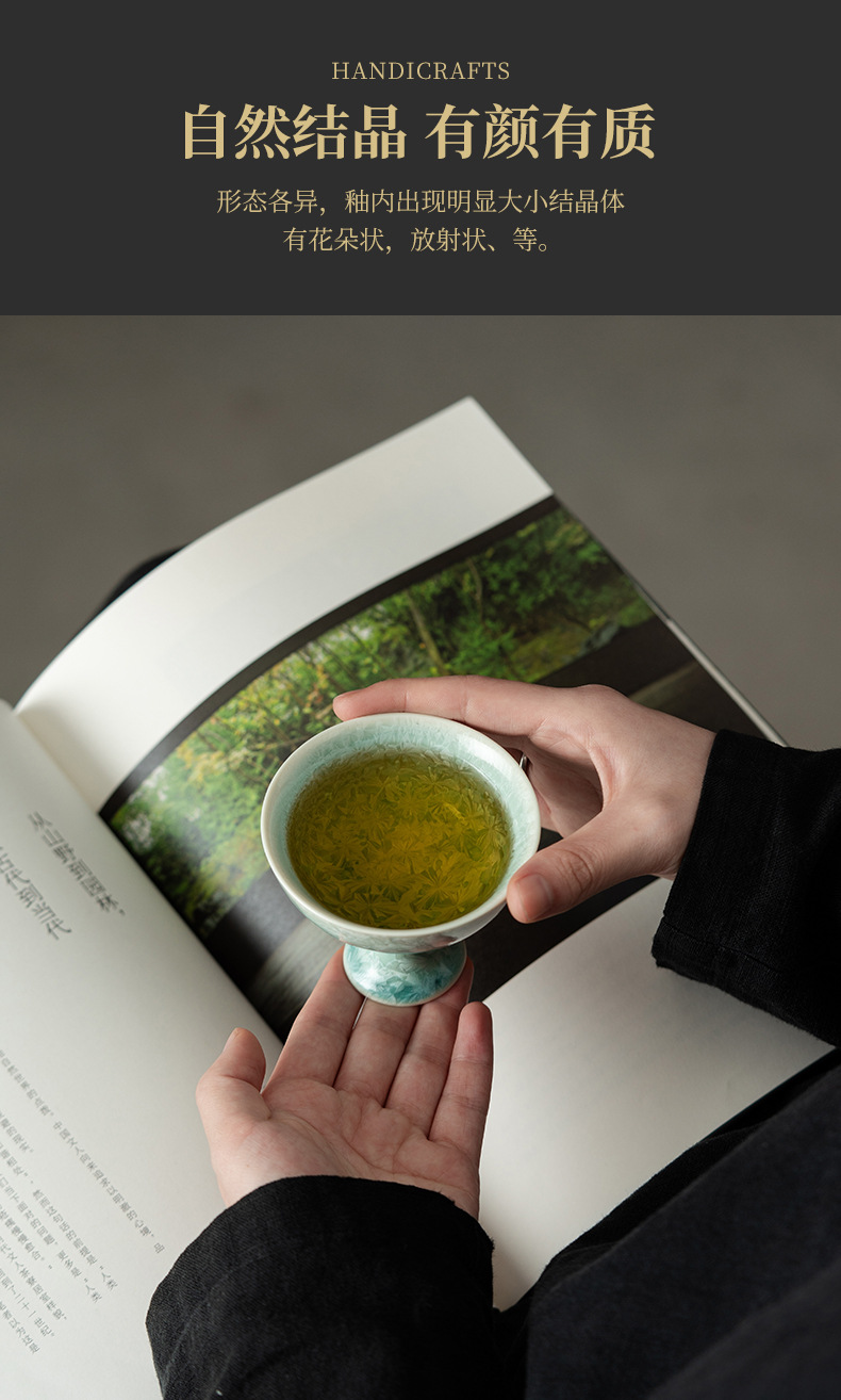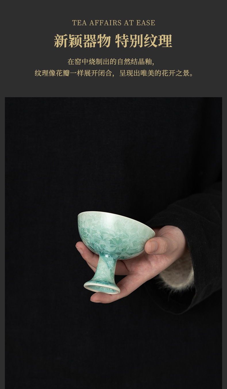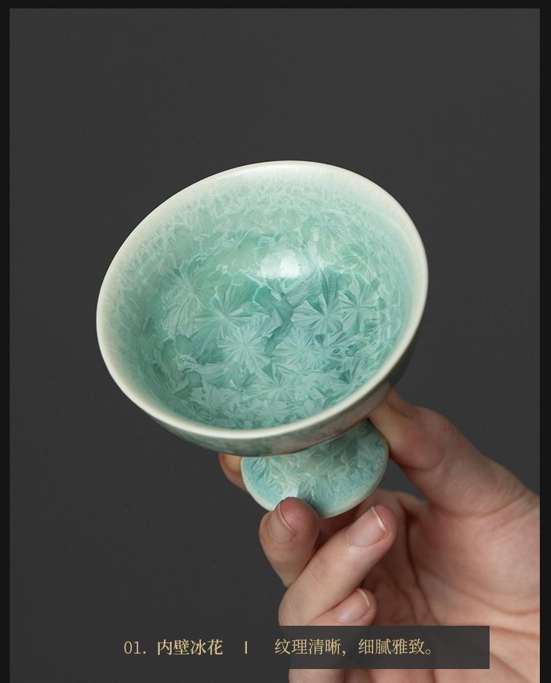마스터 송 Pu Su Yang Ye 크리스탈 유약 크리스탈 플라워 마스터 컵 차 시음 컵 녹색 얼음 꽃 고블 개인 선물 상자스토어 가기