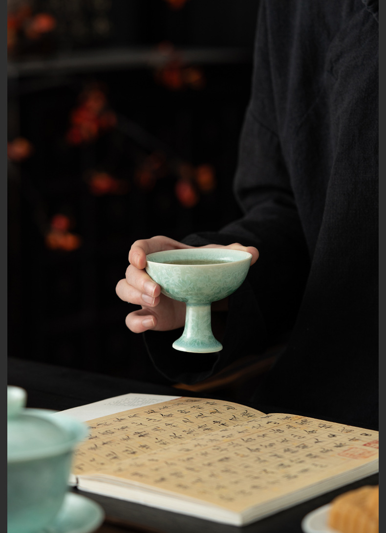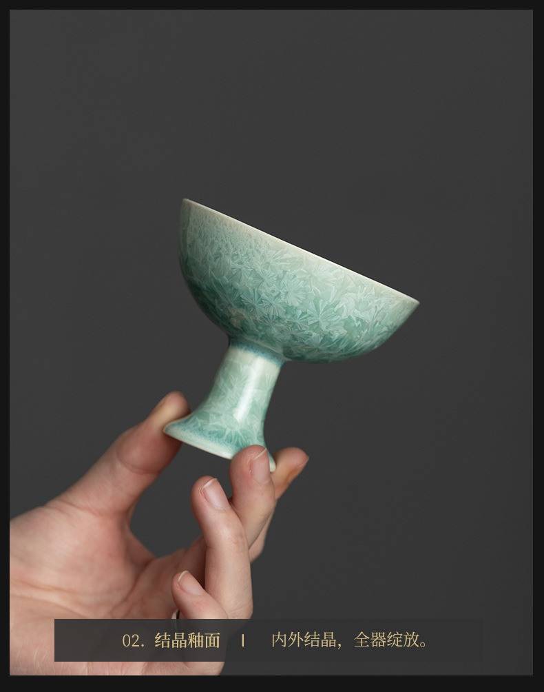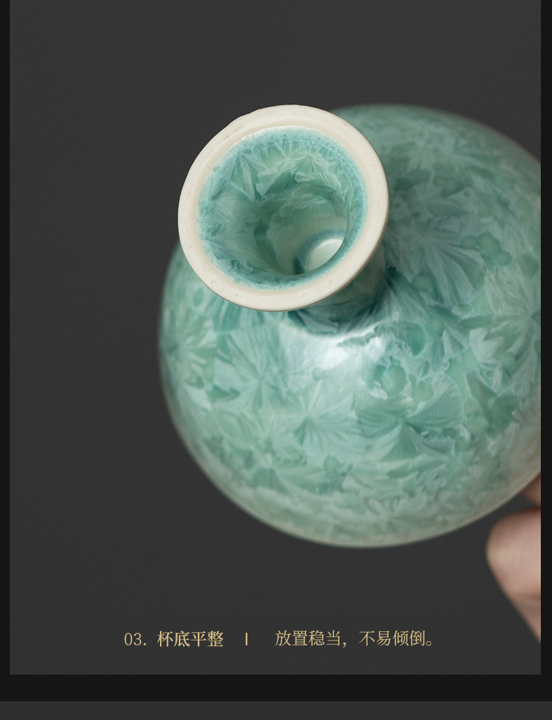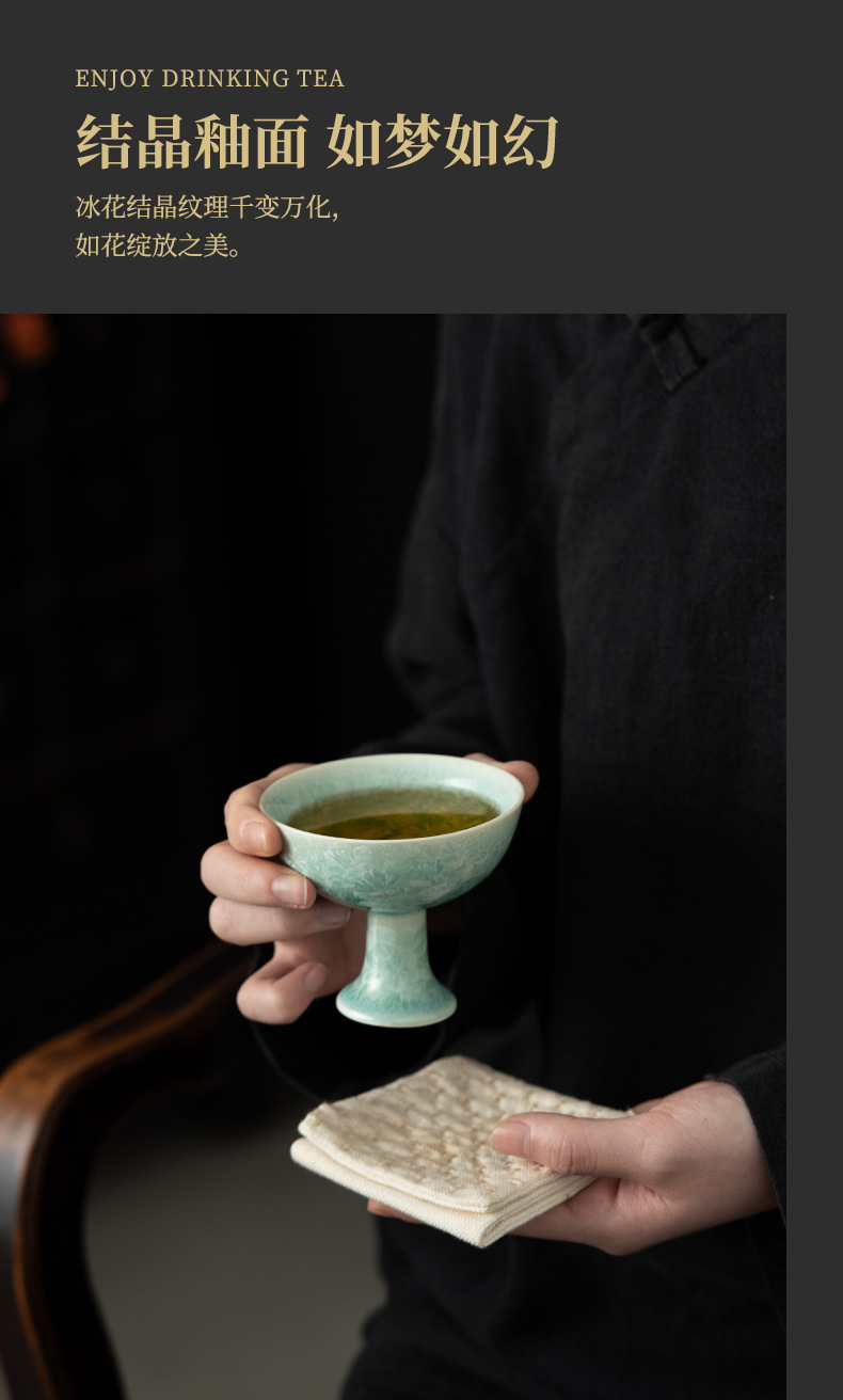 마스터 송 Pu Su Yang Ye 크리스탈 유약 크리스탈 플라워 마스터 컵 차 시음 컵 녹색 얼음 꽃 고블 개인 선물 상자스토어 가기