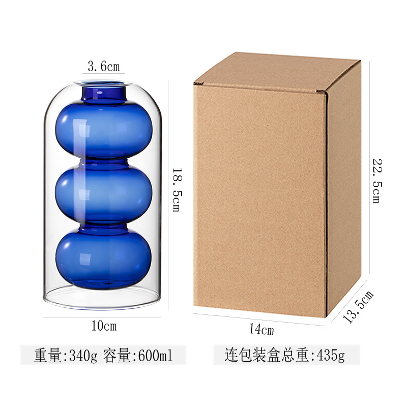 새로운 창조적 인 유럽 스타일의 더블 레이어 내부 매듭 유리 꽃병 홈 액세서리 수경 꽃 배열 장식품스토어 가기