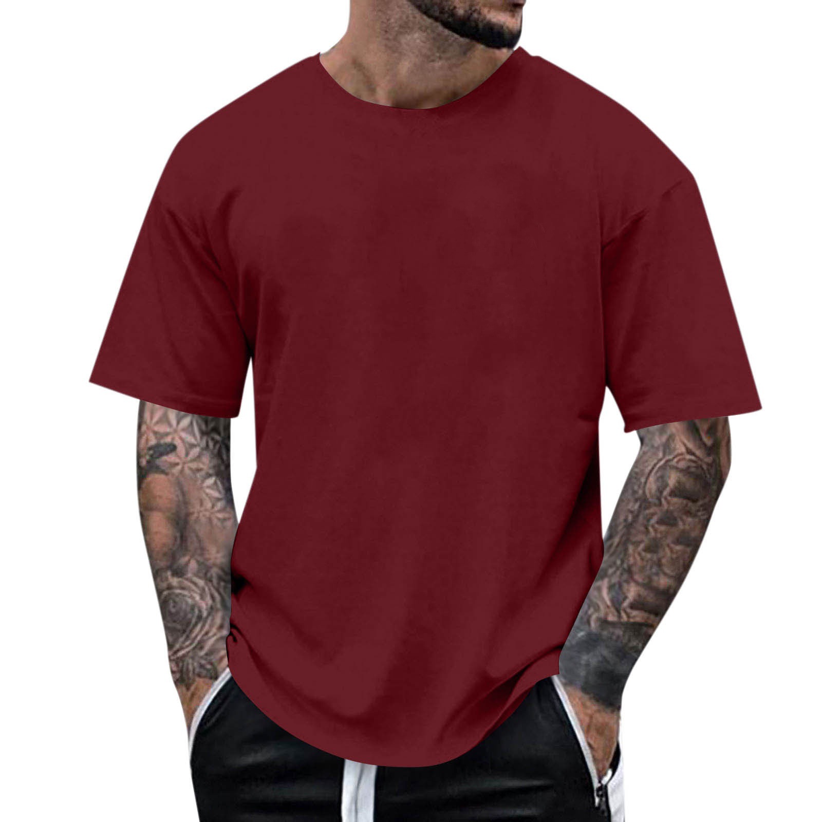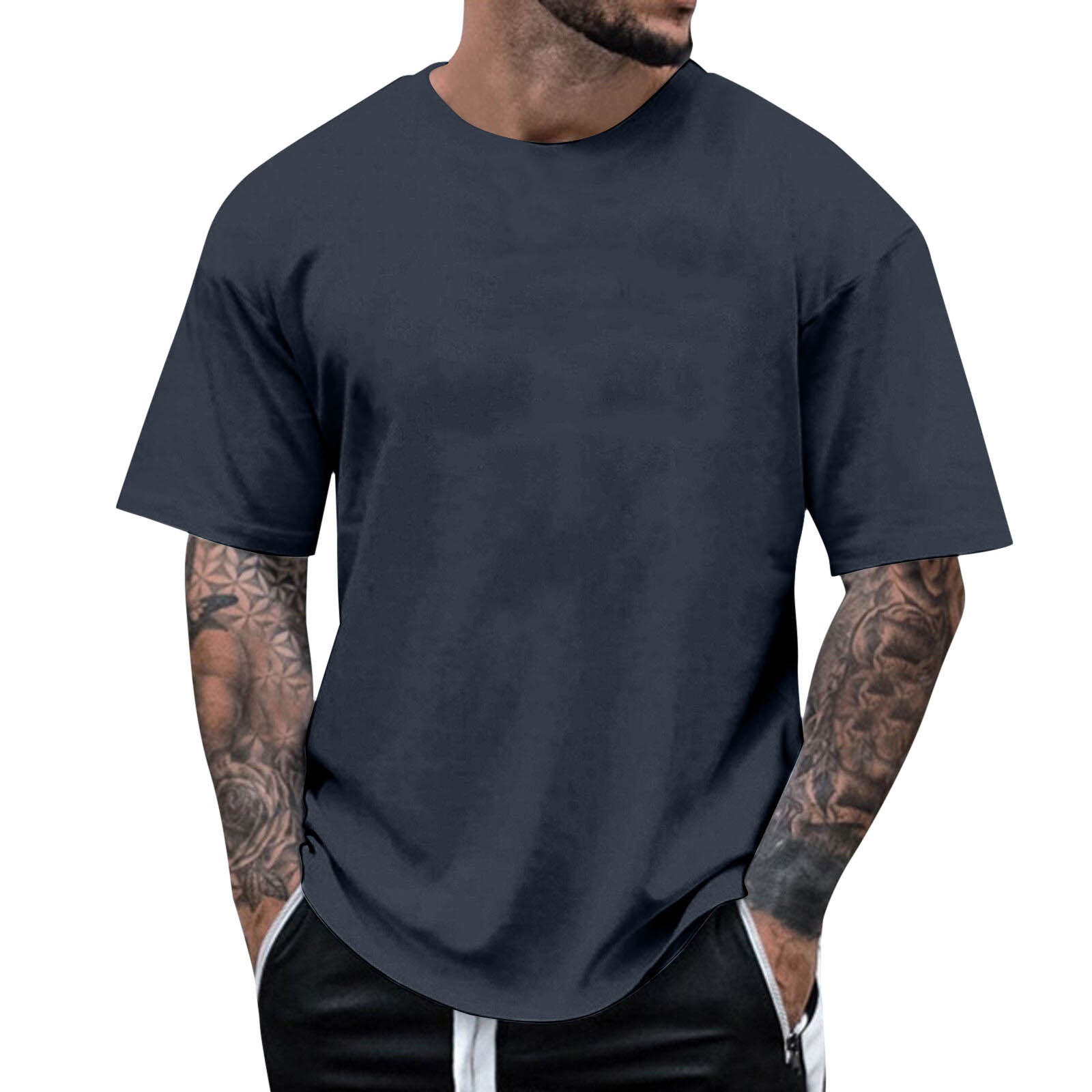 반팔 티셔츠 남성 트렌디 솔리드 컬러 루즈 라운드 넥 바닥 셔츠 도매 크로스 보더 유럽과 미국 여름 남성 라운드 넥 티셔츠 남성 트렌디
