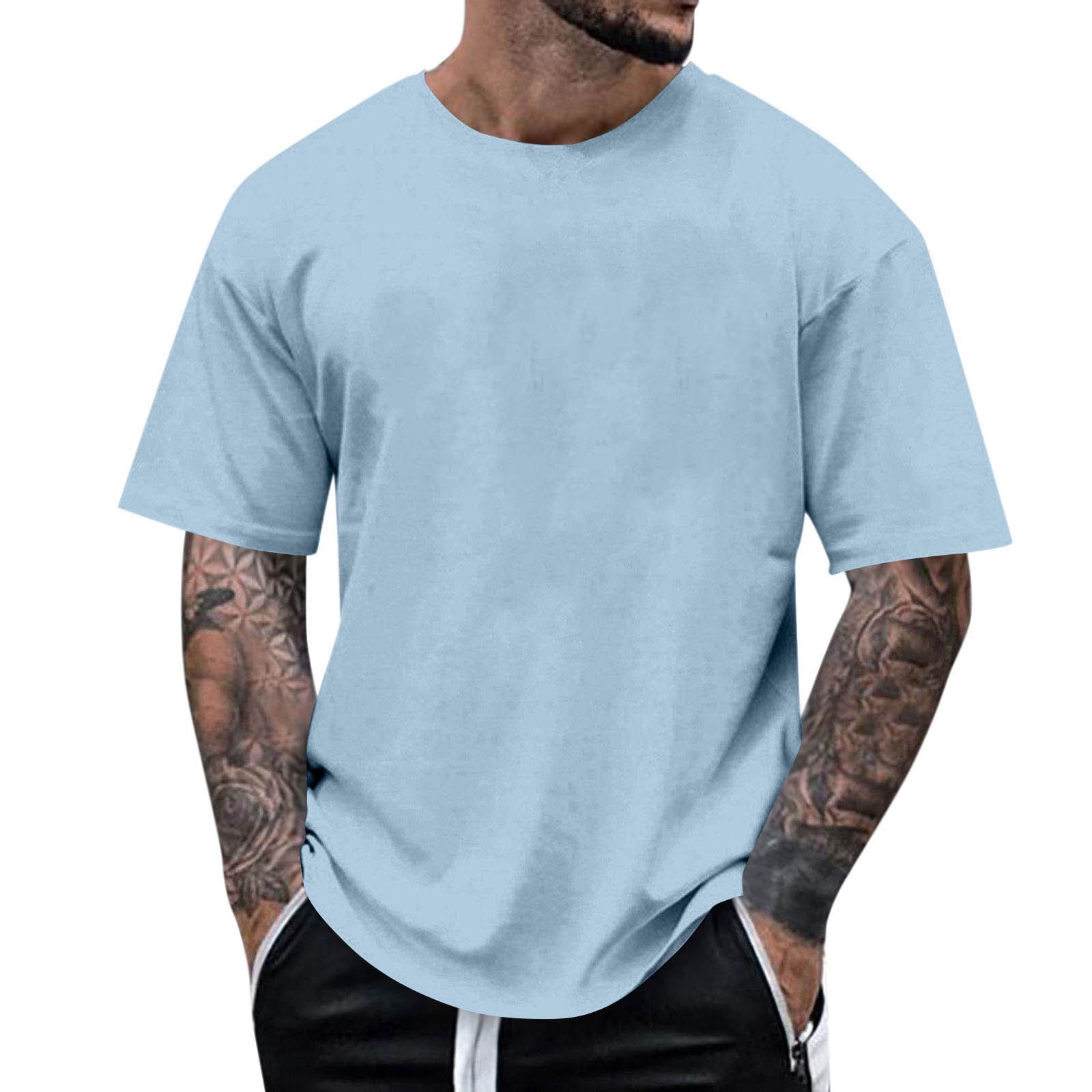 반팔 티셔츠 남성 트렌디 솔리드 컬러 루즈 라운드 넥 바닥 셔츠 도매 크로스 보더 유럽과 미국 여름 남성 라운드 넥 티셔츠 남성 트렌디스토어 가기