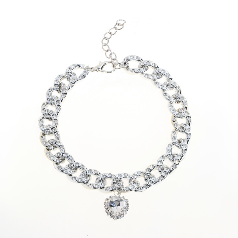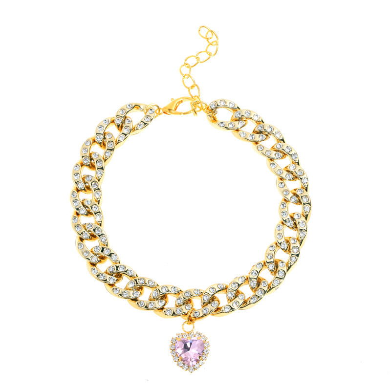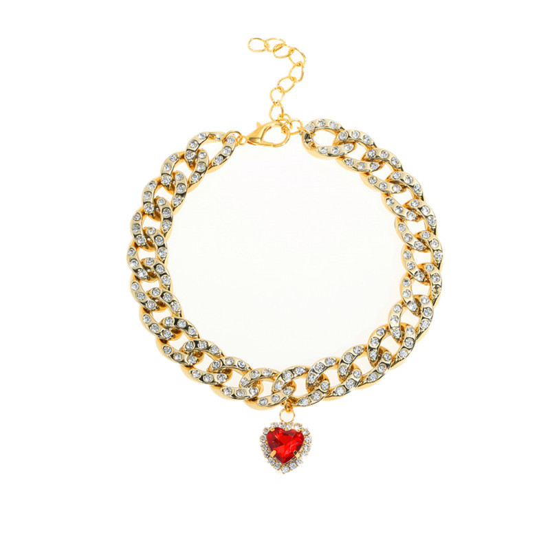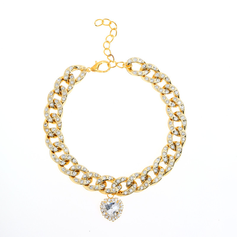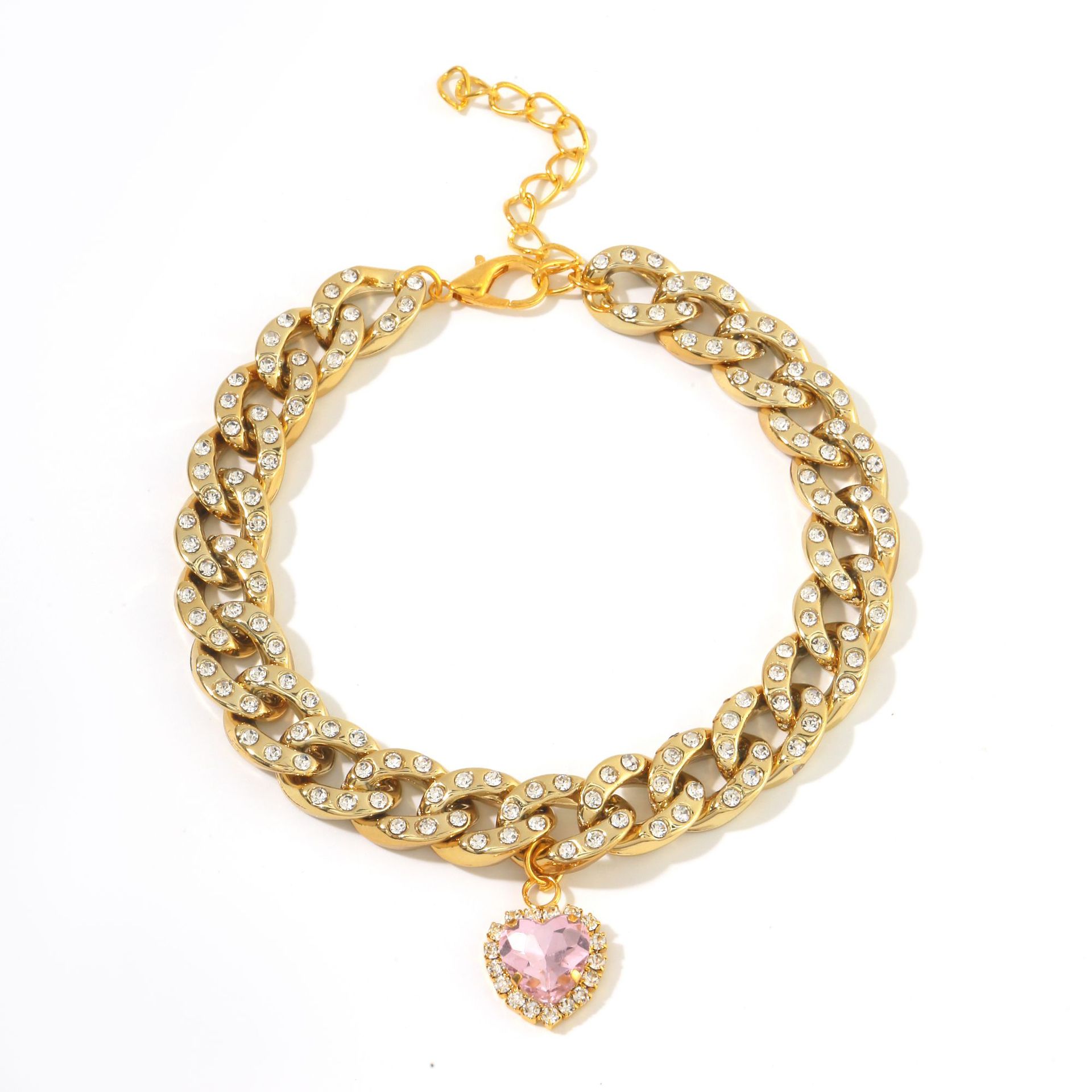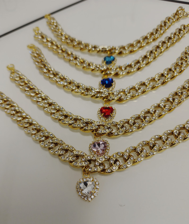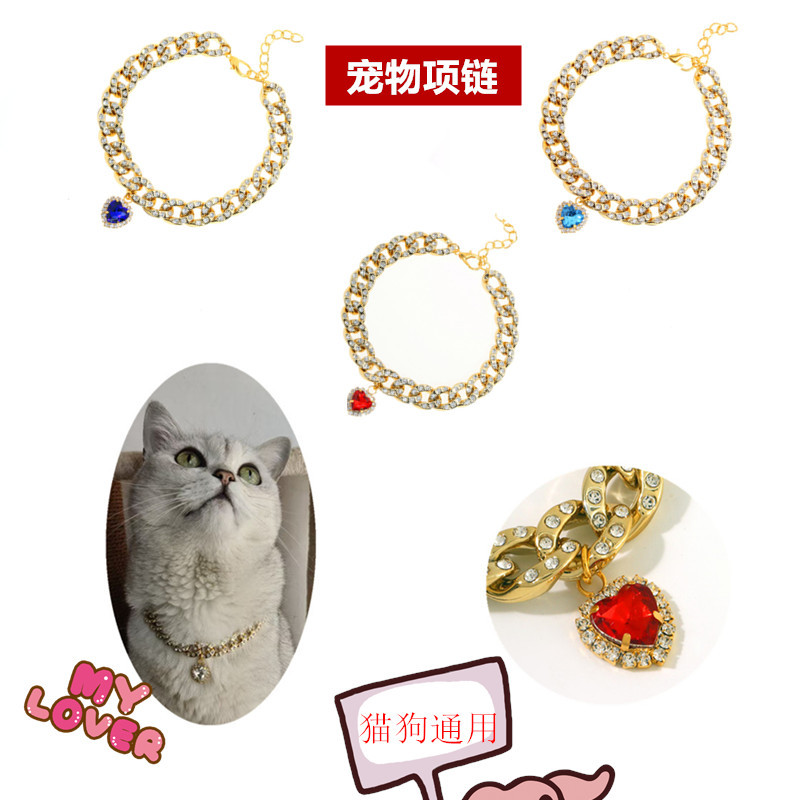 새로운 애완 동물 용품 다이아몬드 목걸이 고양이 개 목걸이 사랑 보석 고양이 개 유니버설 국경 골든 체인
