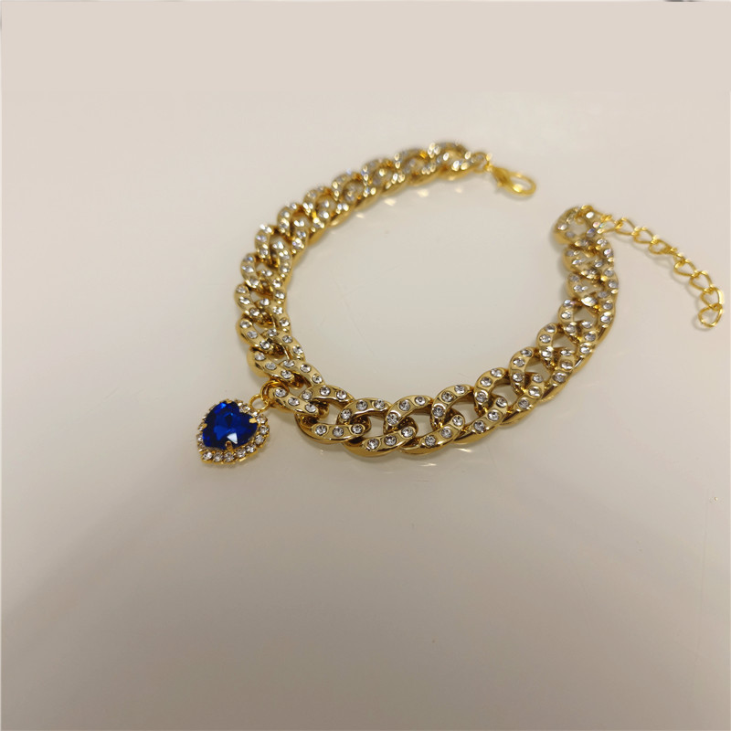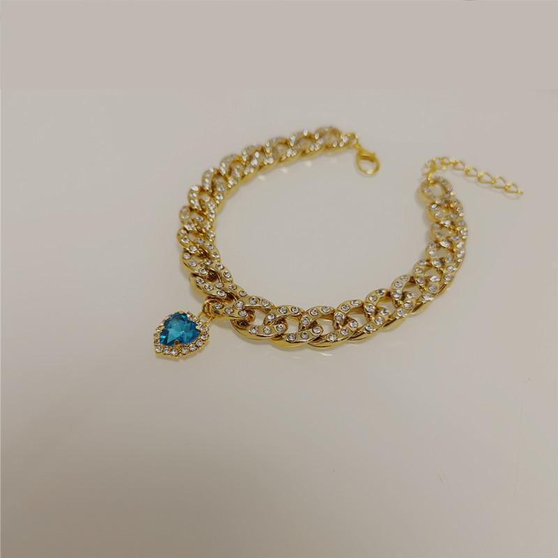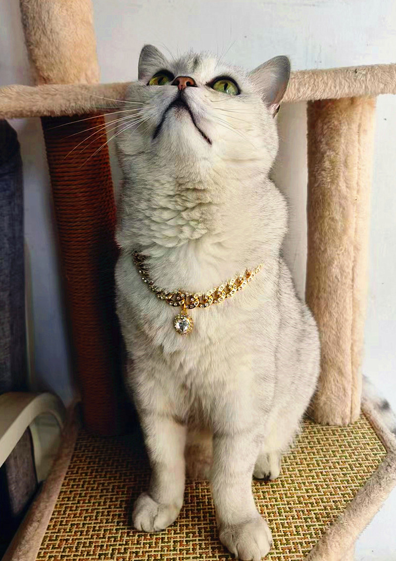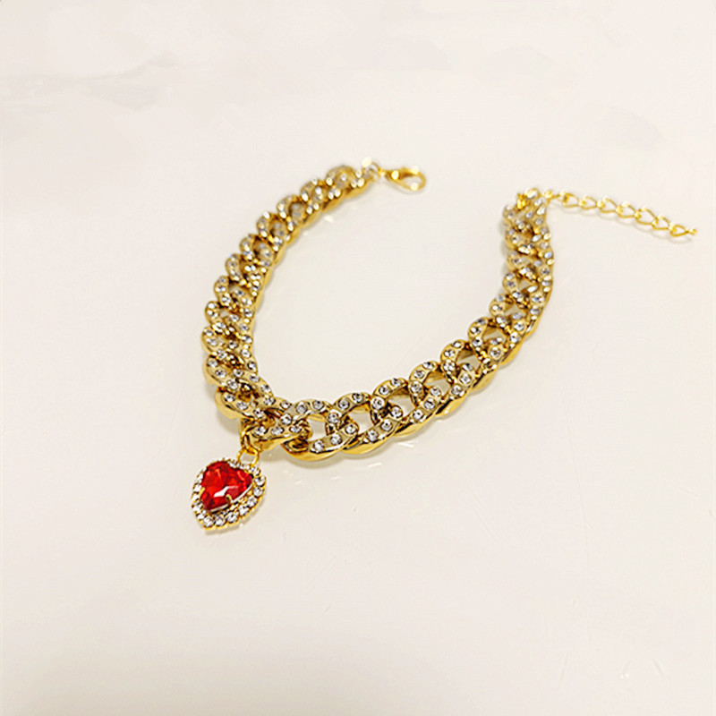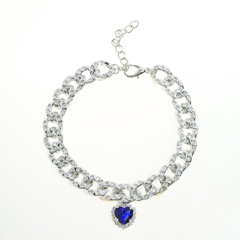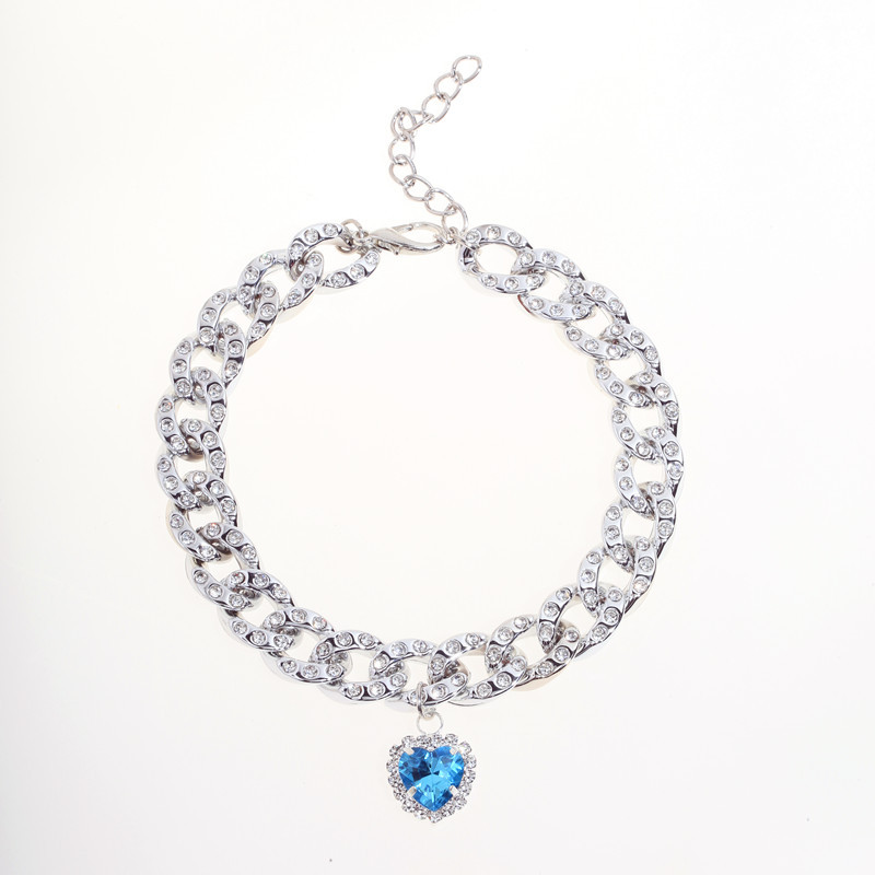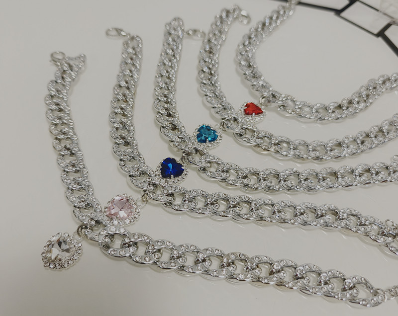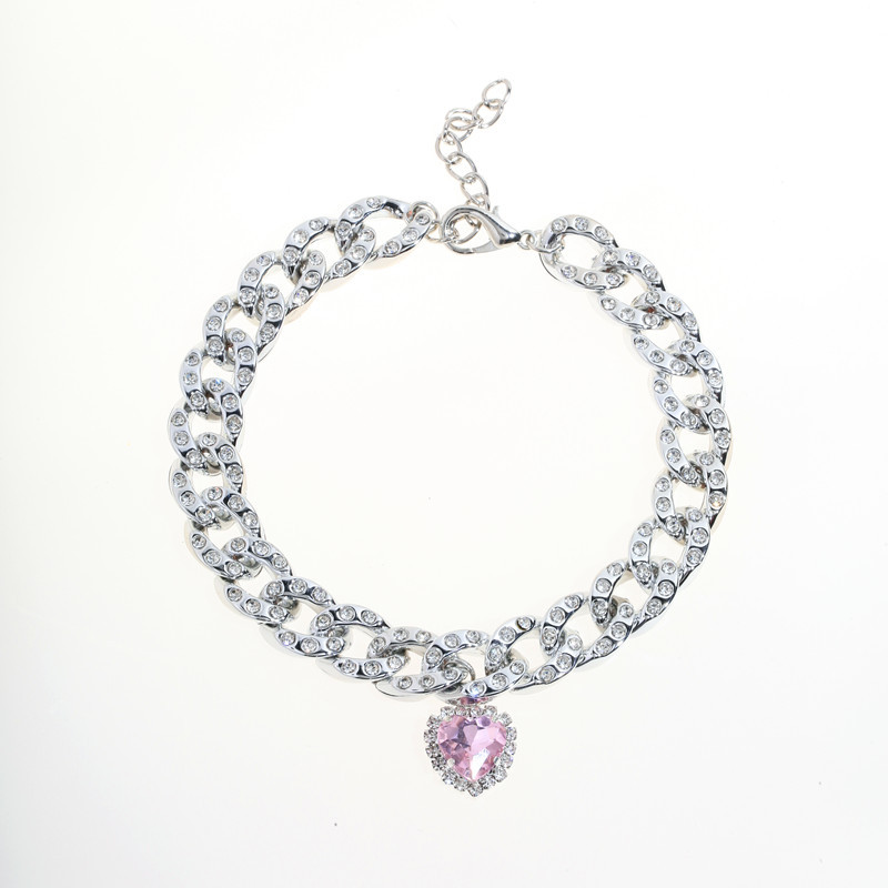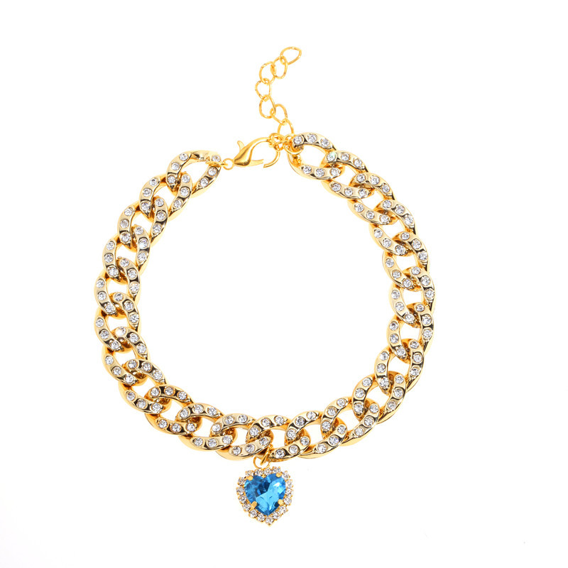 새로운 애완 동물 용품 다이아몬드 목걸이 고양이 개 목걸이 사랑 보석 고양이 개 유니버설 국경 골든 체인