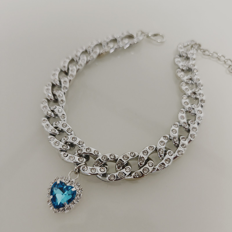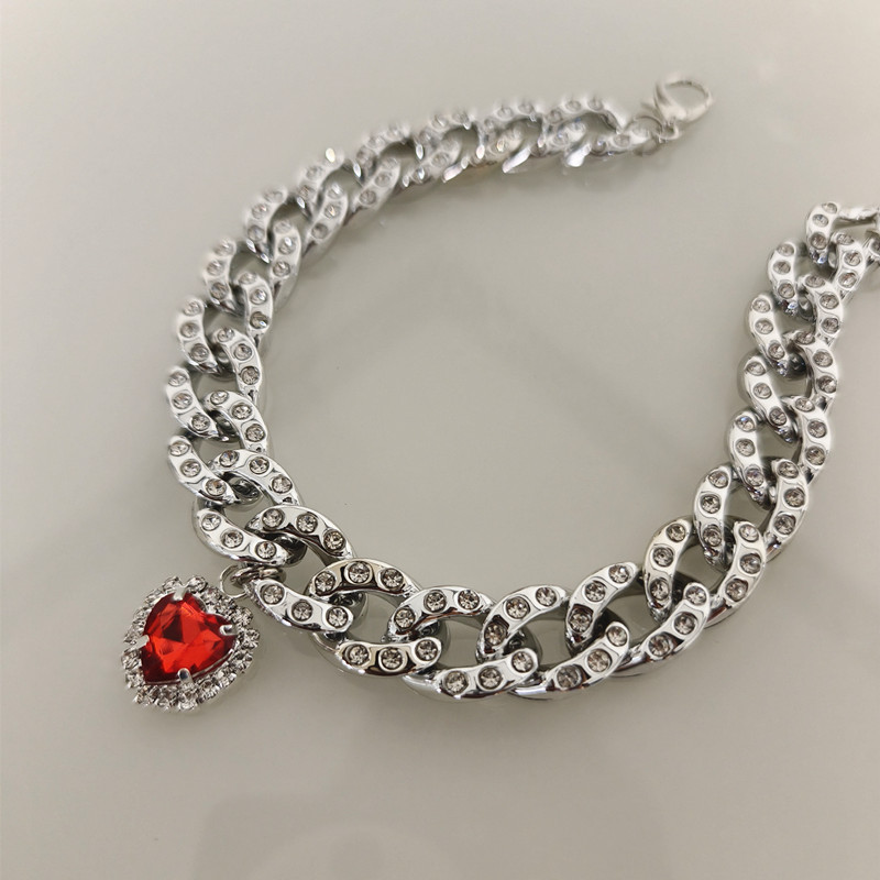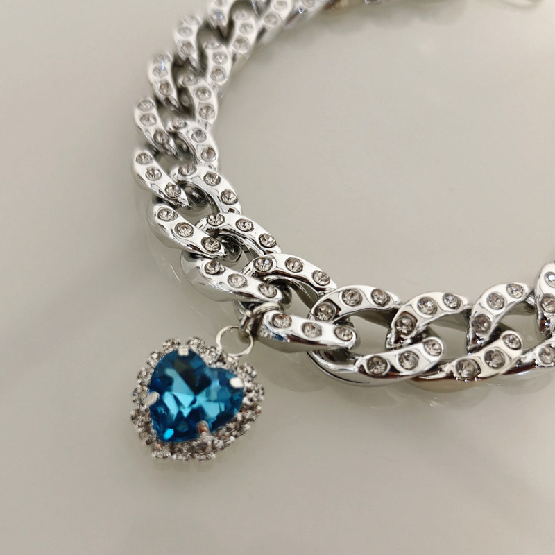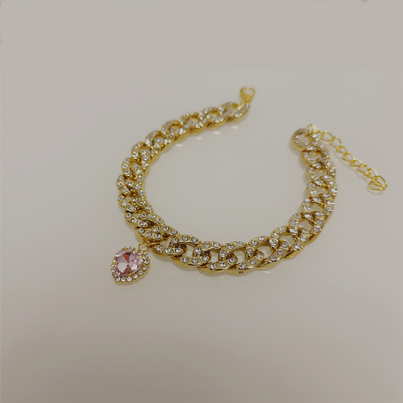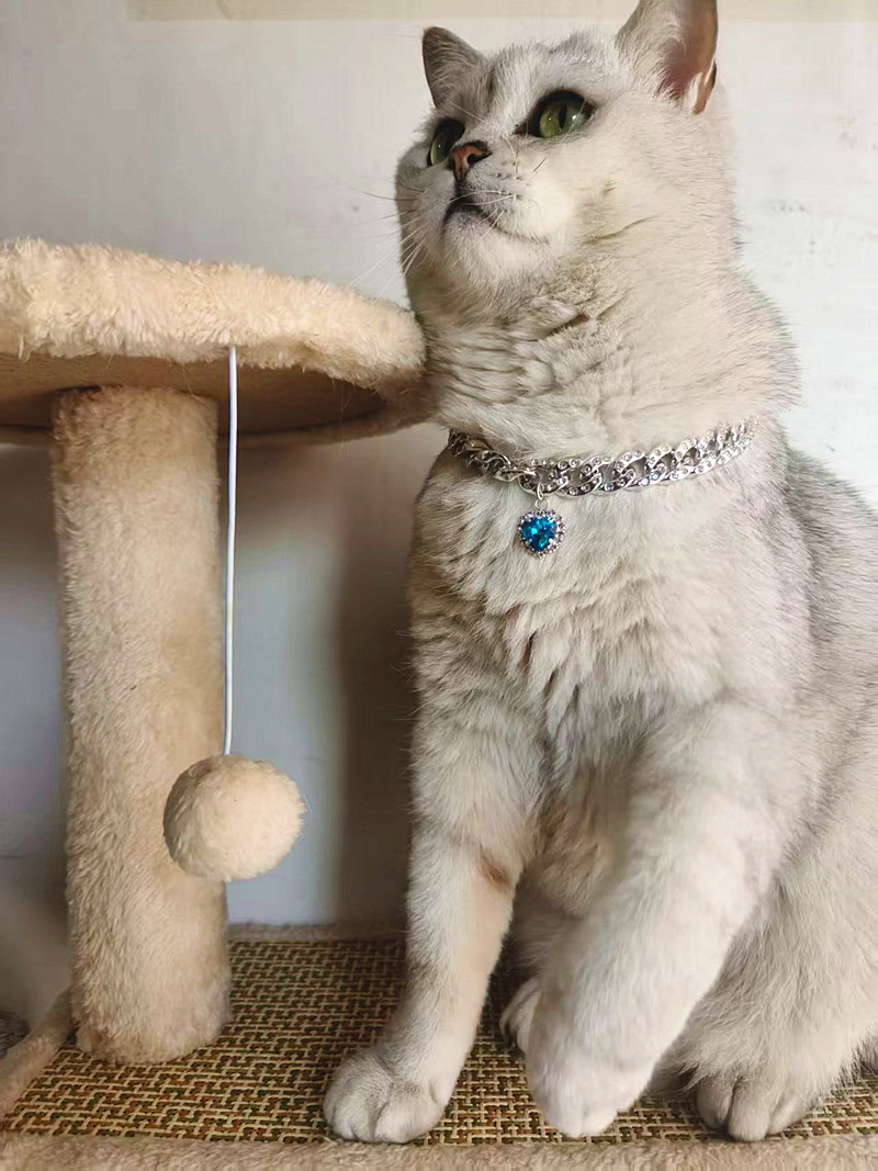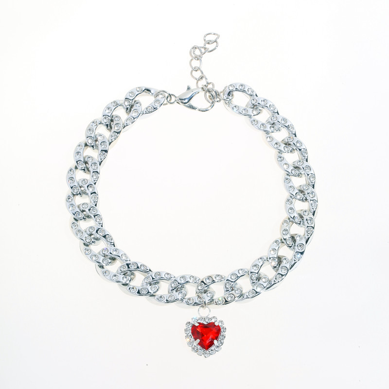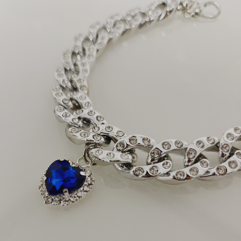 새로운 애완 동물 용품 다이아몬드 목걸이 고양이 개 목걸이 사랑 보석 고양이 개 유니버설 국경 골든 체인