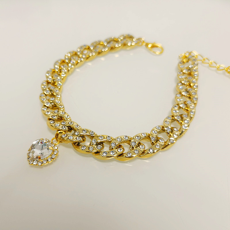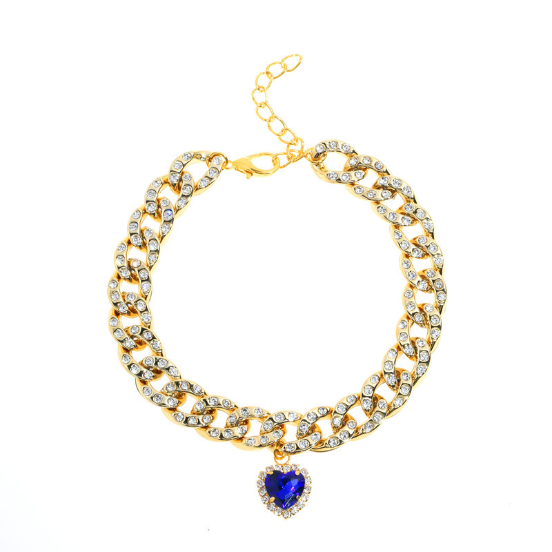 새로운 애완 동물 용품 다이아몬드 목걸이 고양이 개 목걸이 사랑 보석 고양이 개 유니버설 국경 골든 체인스토어 가기