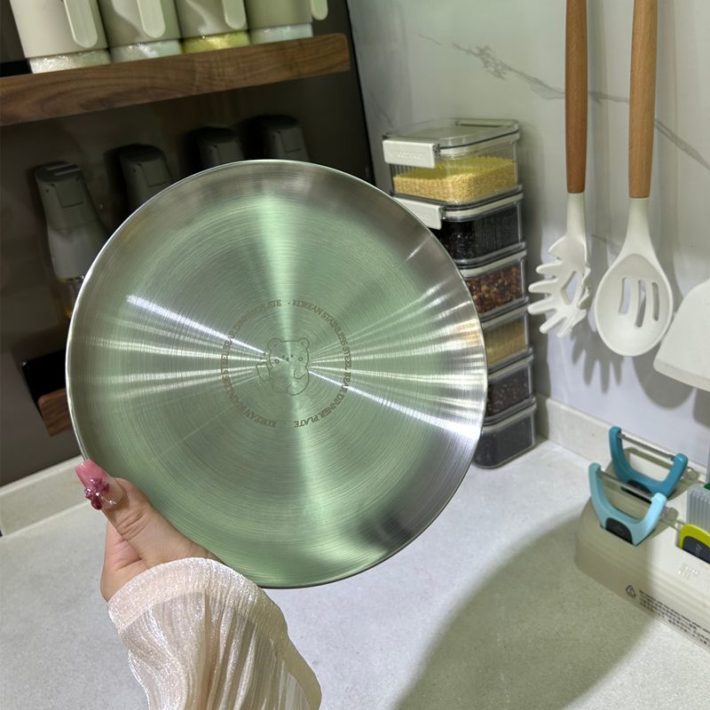 한국 스타일 인 스타일 곰 스테인레스 스틸 플레이트 원형 디스크 다기능 플레이트 바베큐 플레이트 트레이 귀여운 피크닉 플레이트