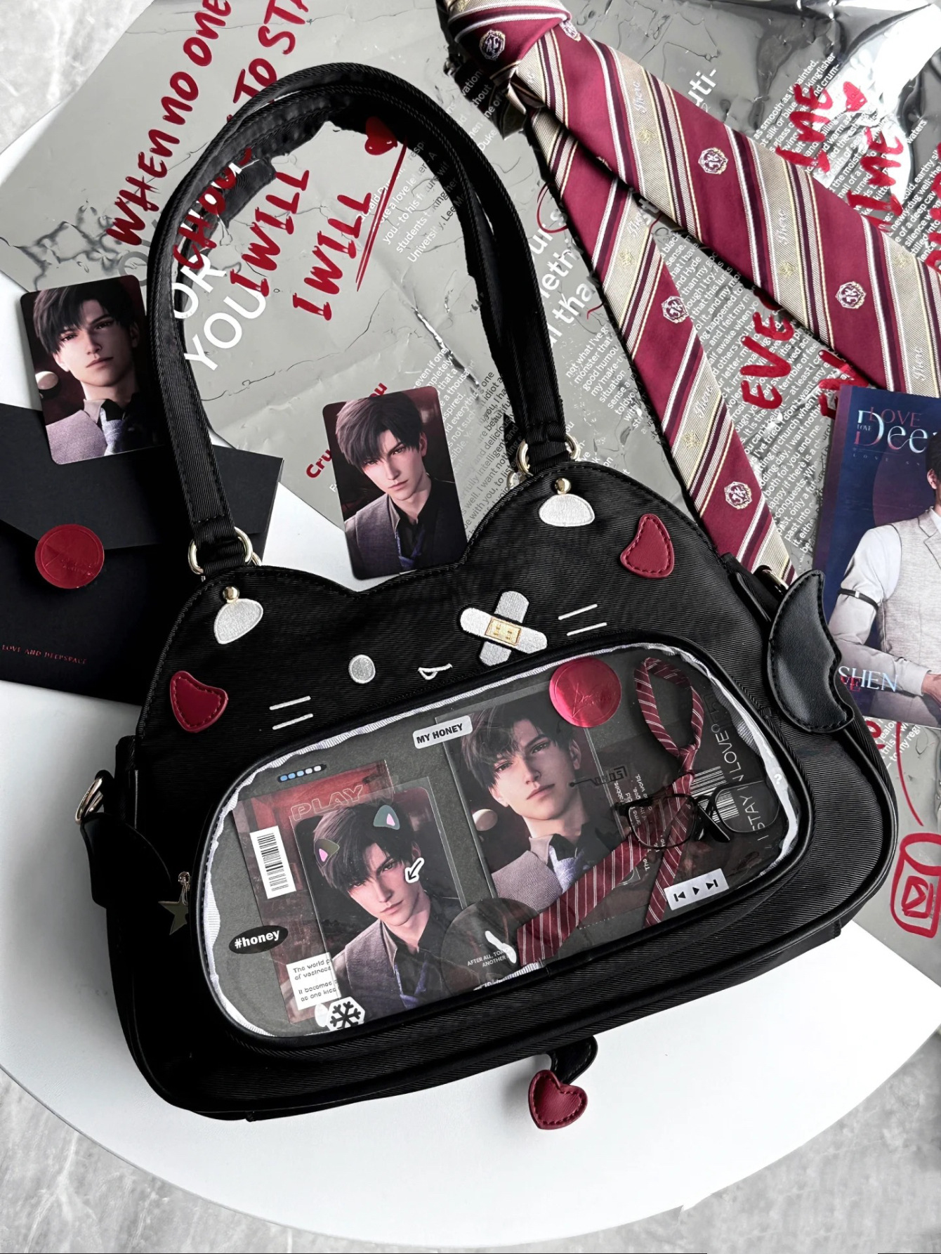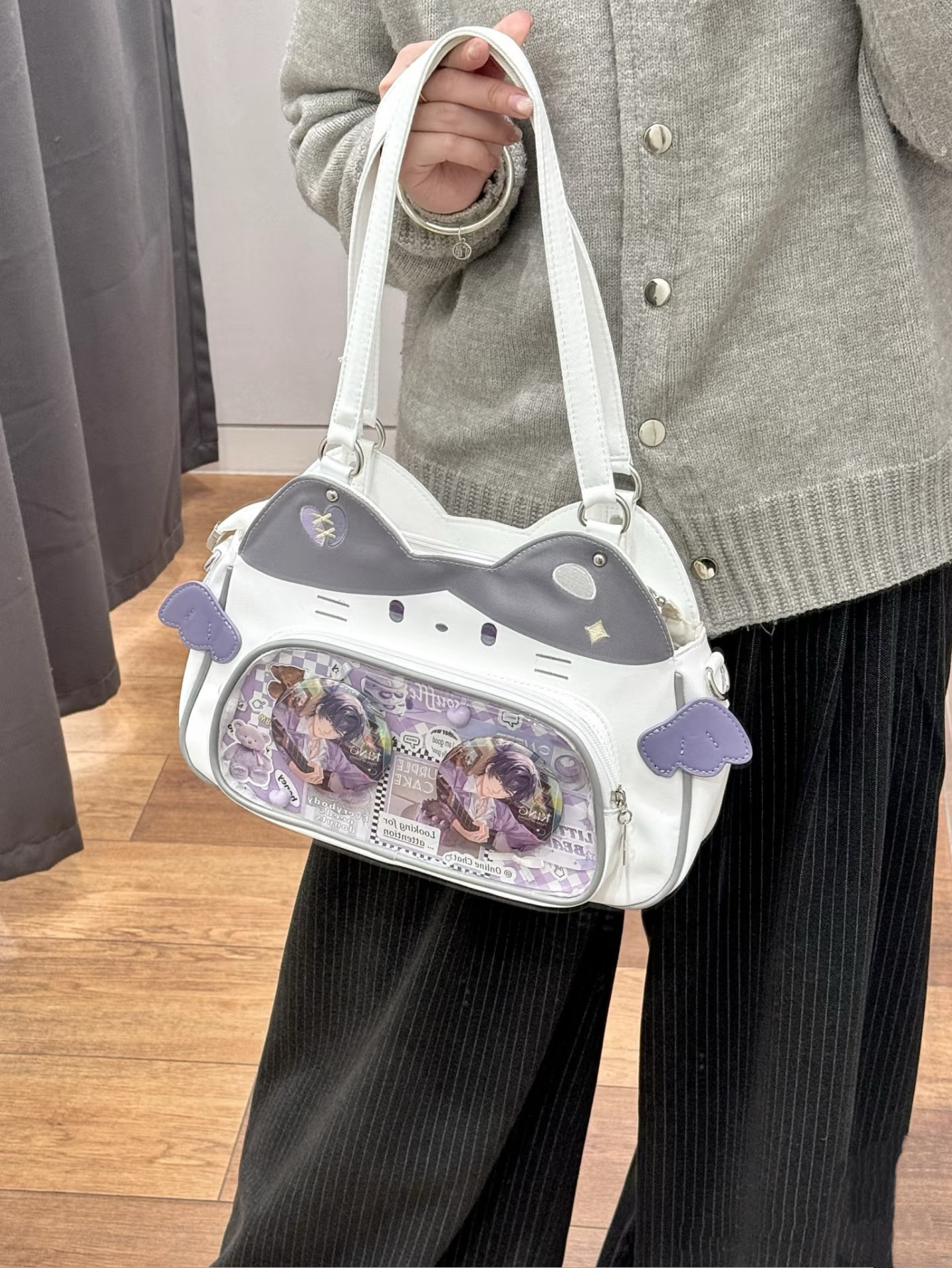 일본 귀여운 소녀 악마 고양이 가벼운 음식 투명한 밀레 통증 가방 쇼핑 통근 어깨 횡단 가방스토어 가기
