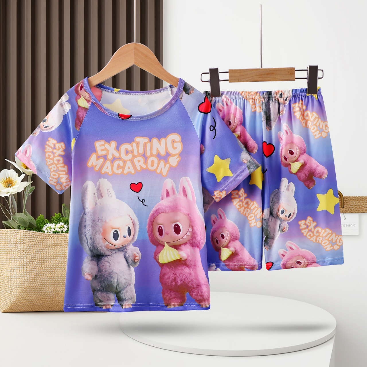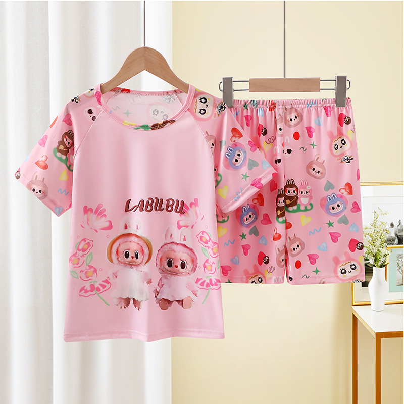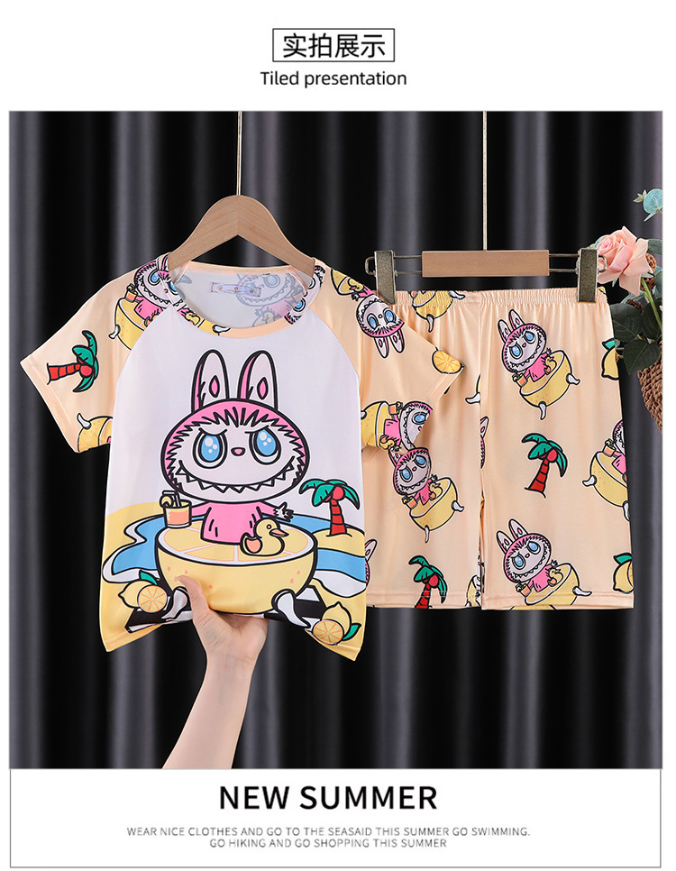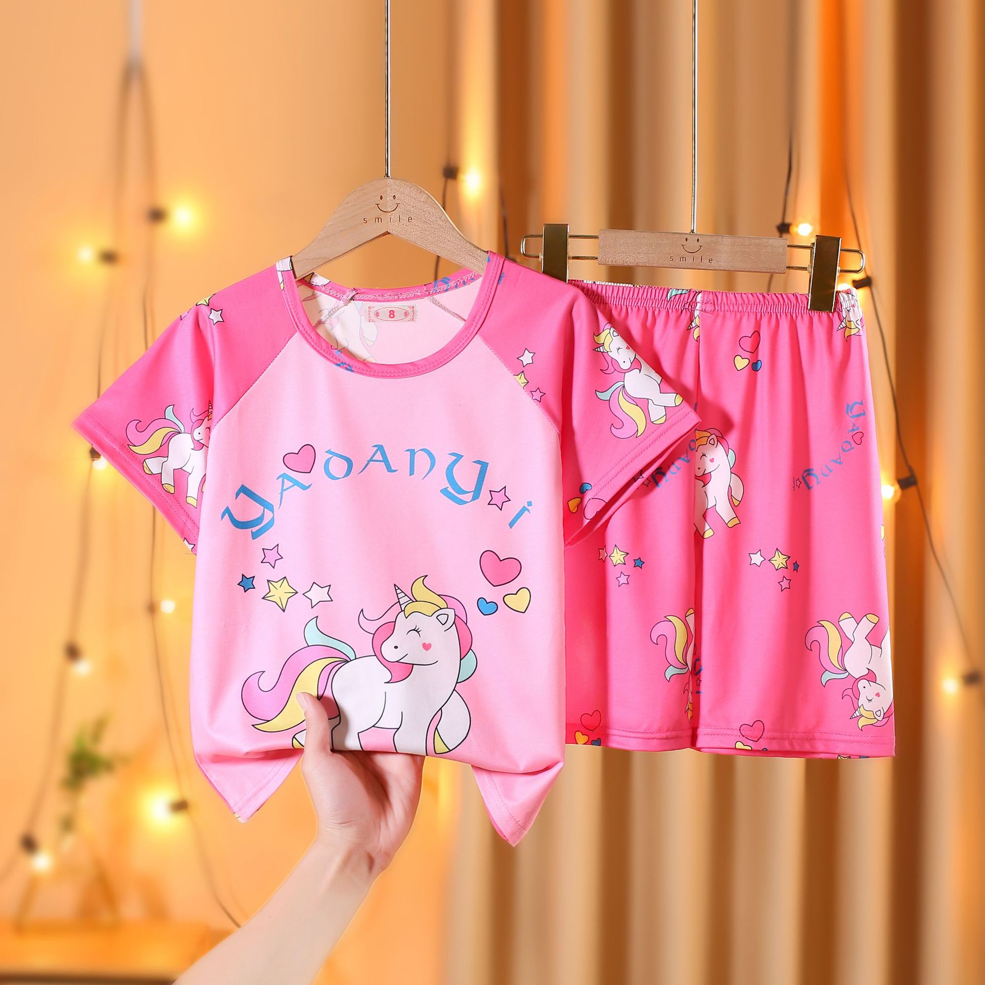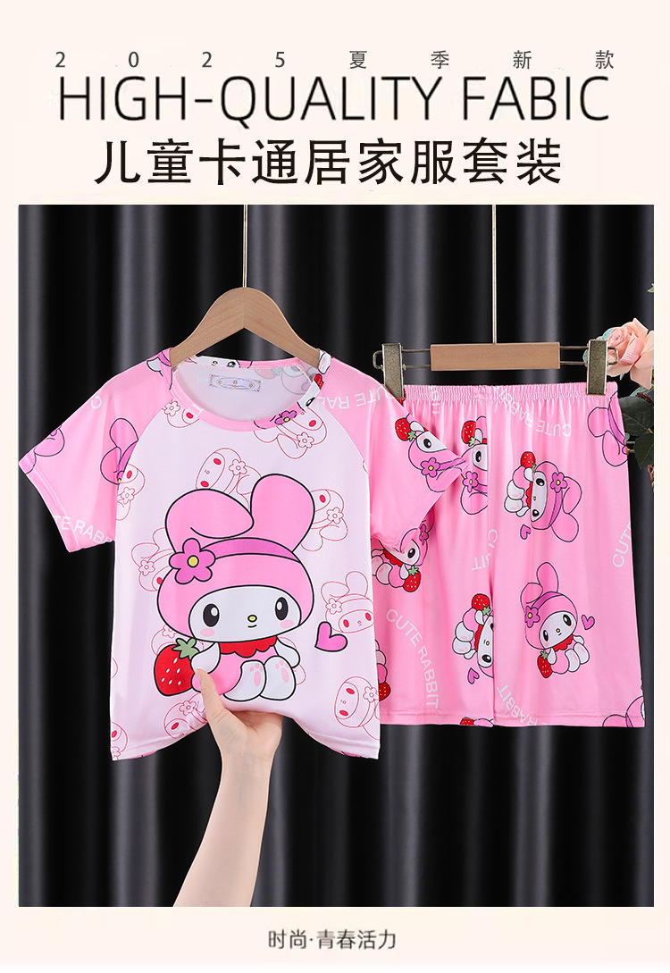 여자 잠옷 여름 반팔 얇은 2025 새로운 스타일 어린이 여자 여름 스타일 중대형 아동복 홈웨어 겉옷