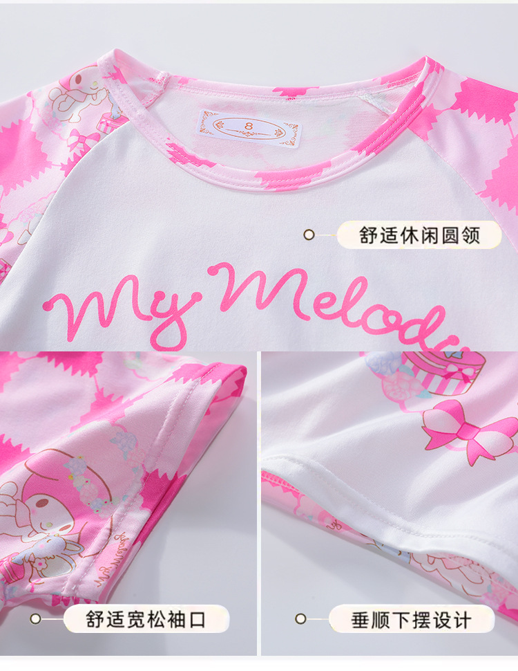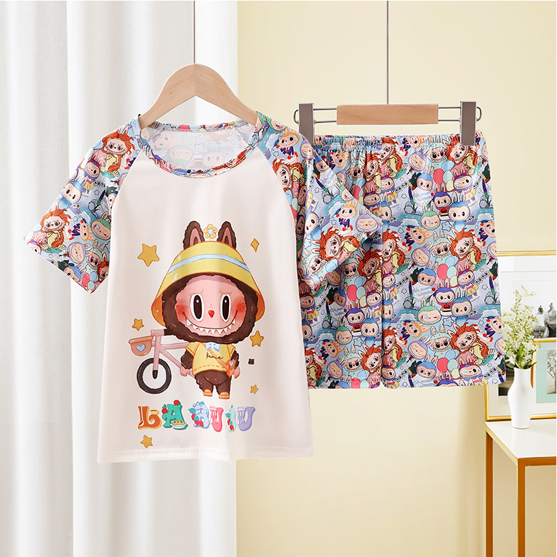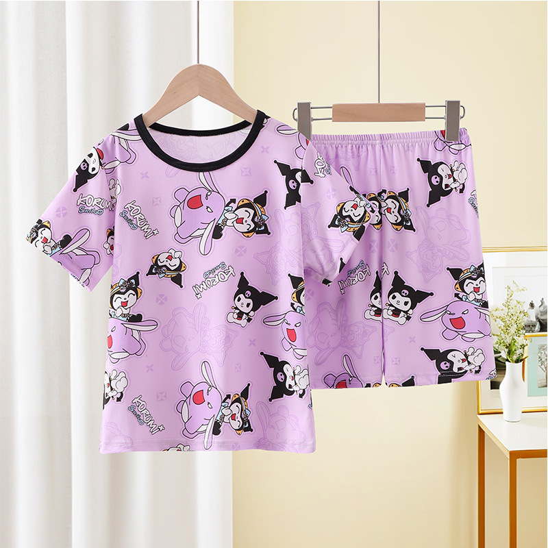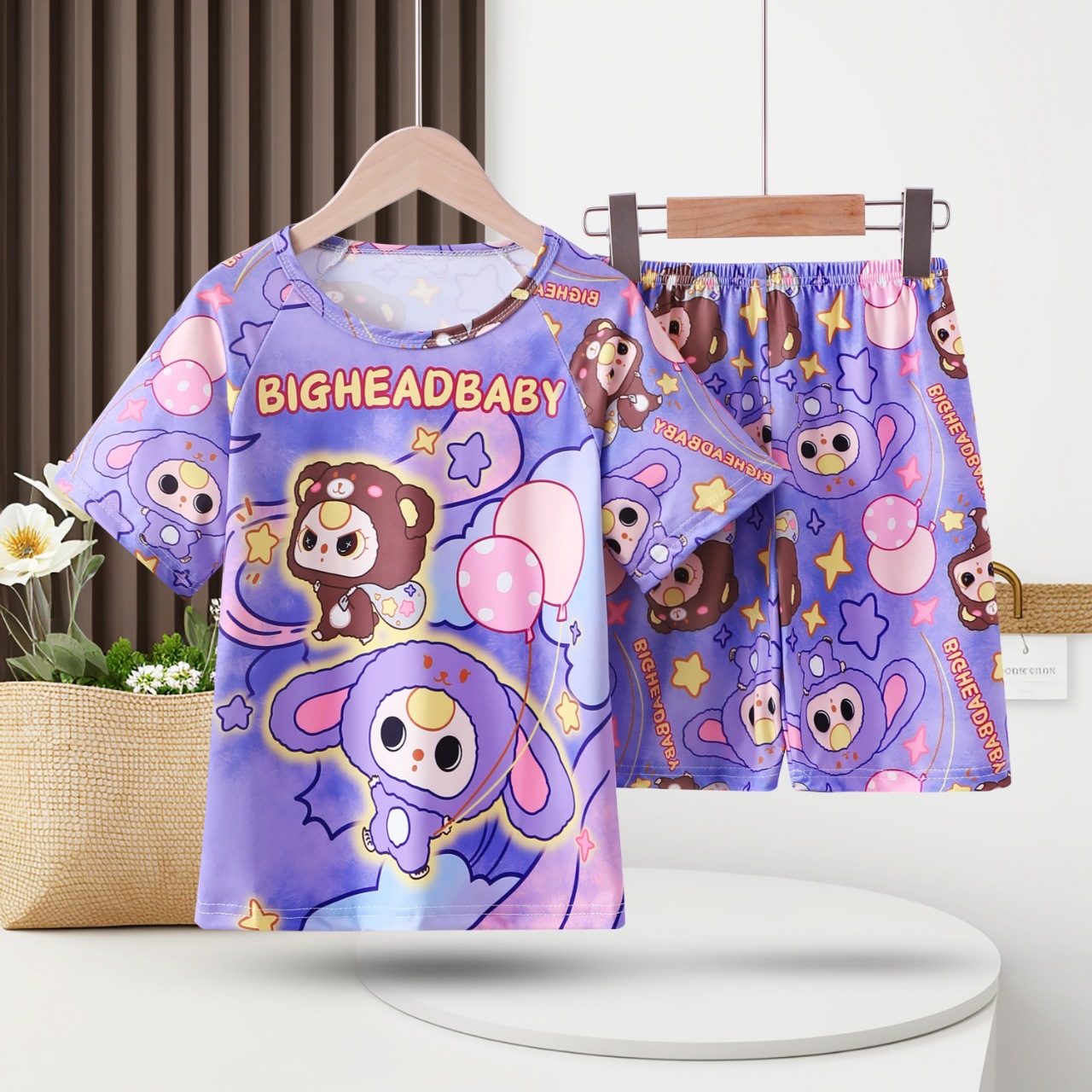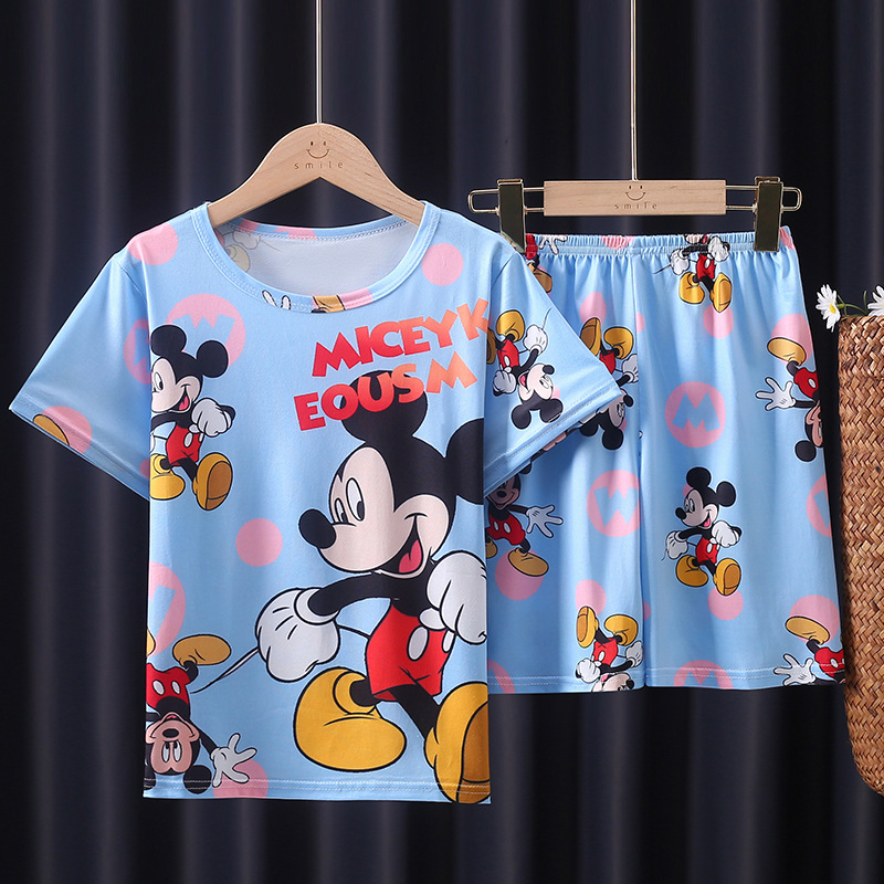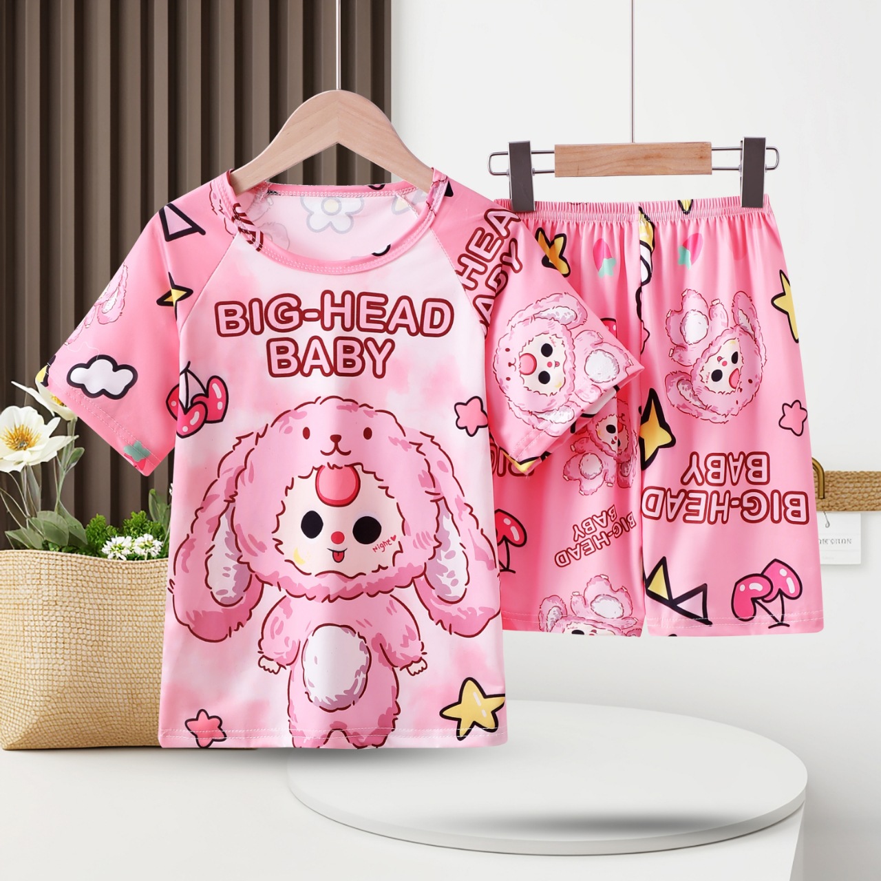 여자 잠옷 여름 반팔 얇은 2025 새로운 스타일 어린이 여자 여름 스타일 중대형 아동복 홈웨어 겉옷