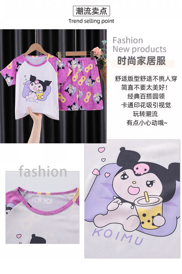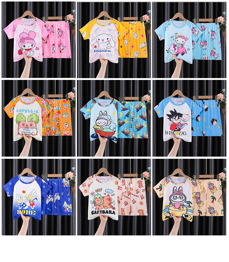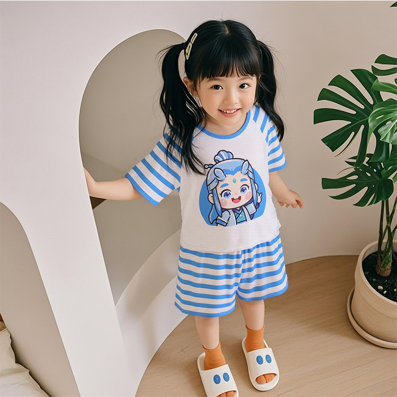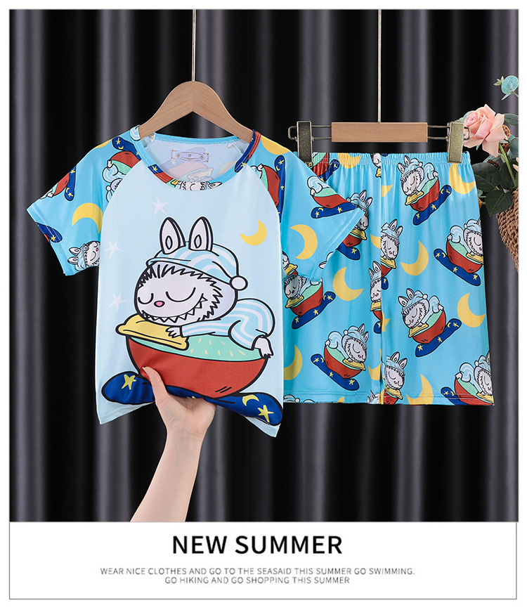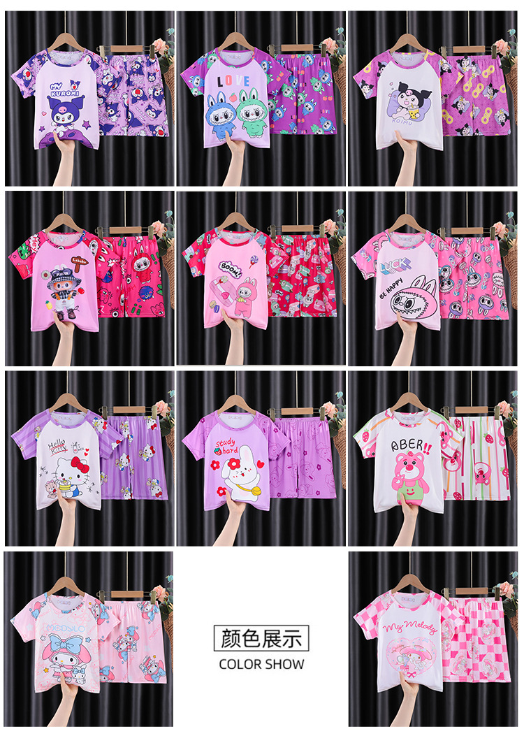 여자 잠옷 여름 반팔 얇은 2025 새로운 스타일 어린이 여자 여름 스타일 중대형 아동복 홈웨어 겉옷스토어 가기
