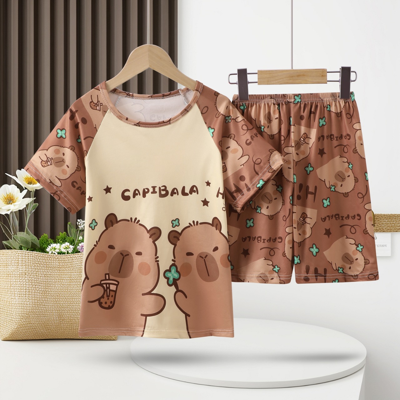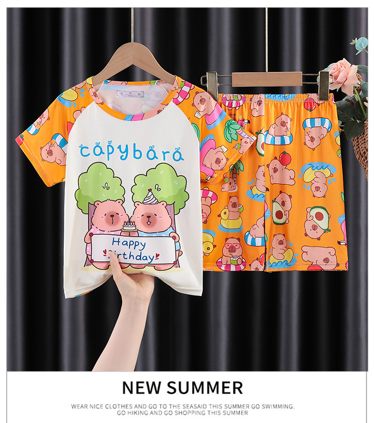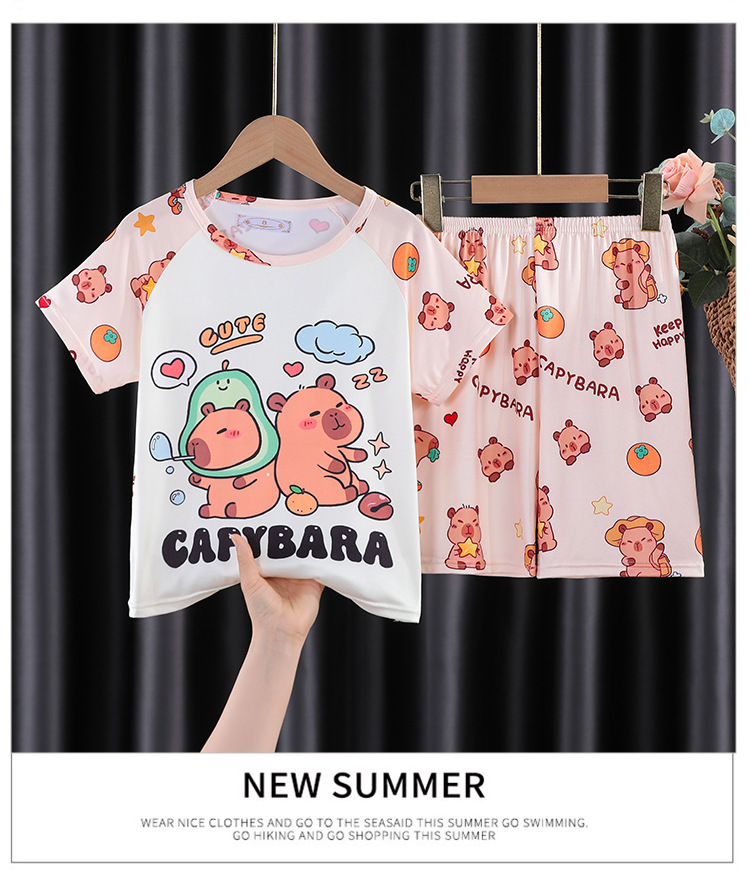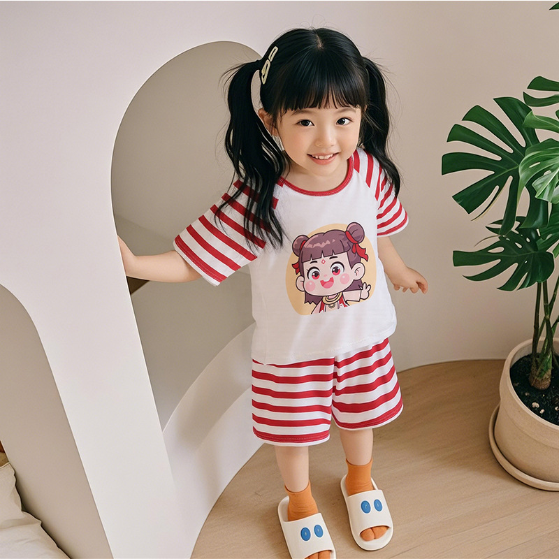 여자 잠옷 여름 반팔 얇은 2025 새로운 스타일 어린이 여자 여름 스타일 중대형 아동복 홈웨어 겉옷스토어 가기