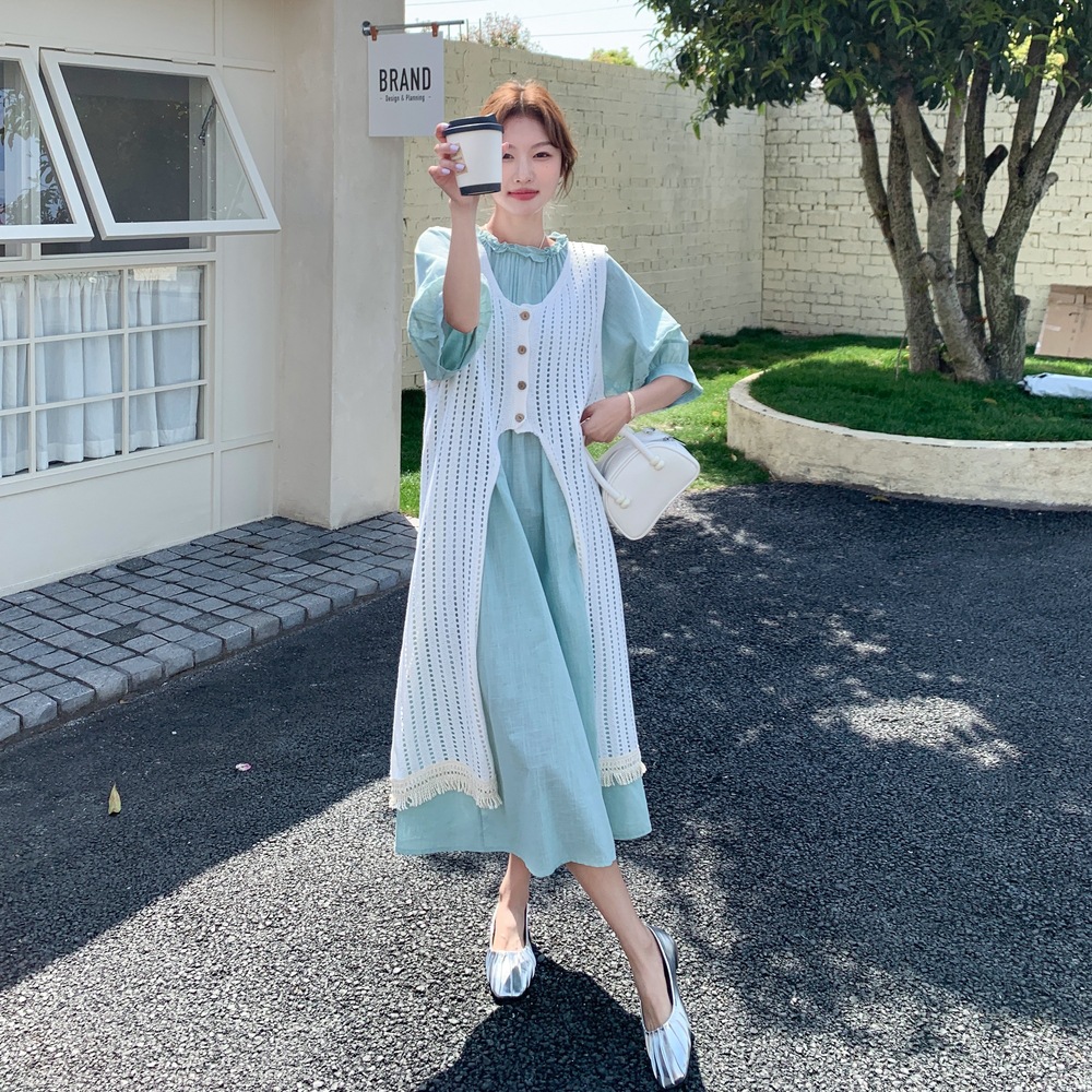 리얼 샷 느슨한 게으른 속이 빈 블라우스 캐주얼 슬림 원피스 2025 새로운 패션 기질 투피스 원피스스토어 가기