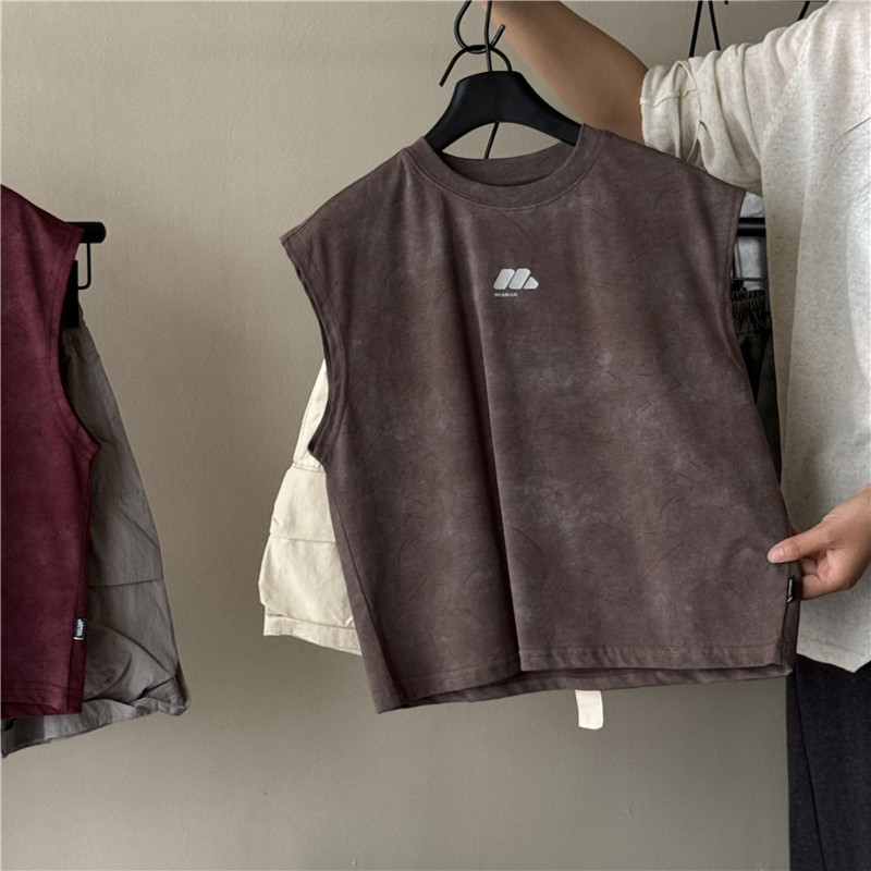 26가지 여름 신상품 남아 여아용 한국 스타일의 세련된 타이다이 민소매 조끼, 아동용 폼 프린트 티셔츠 상의스토어 가기