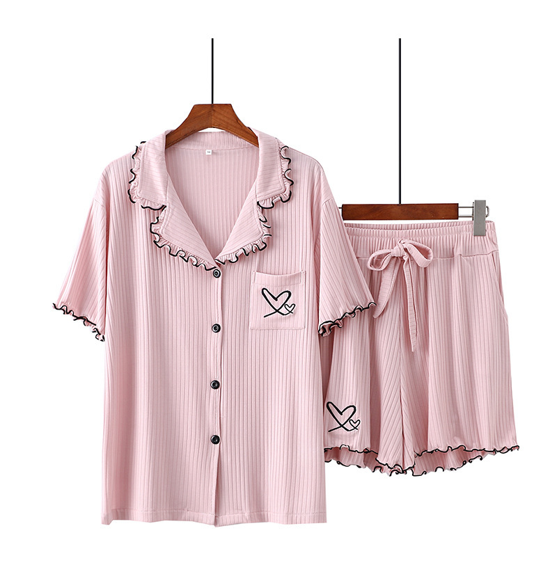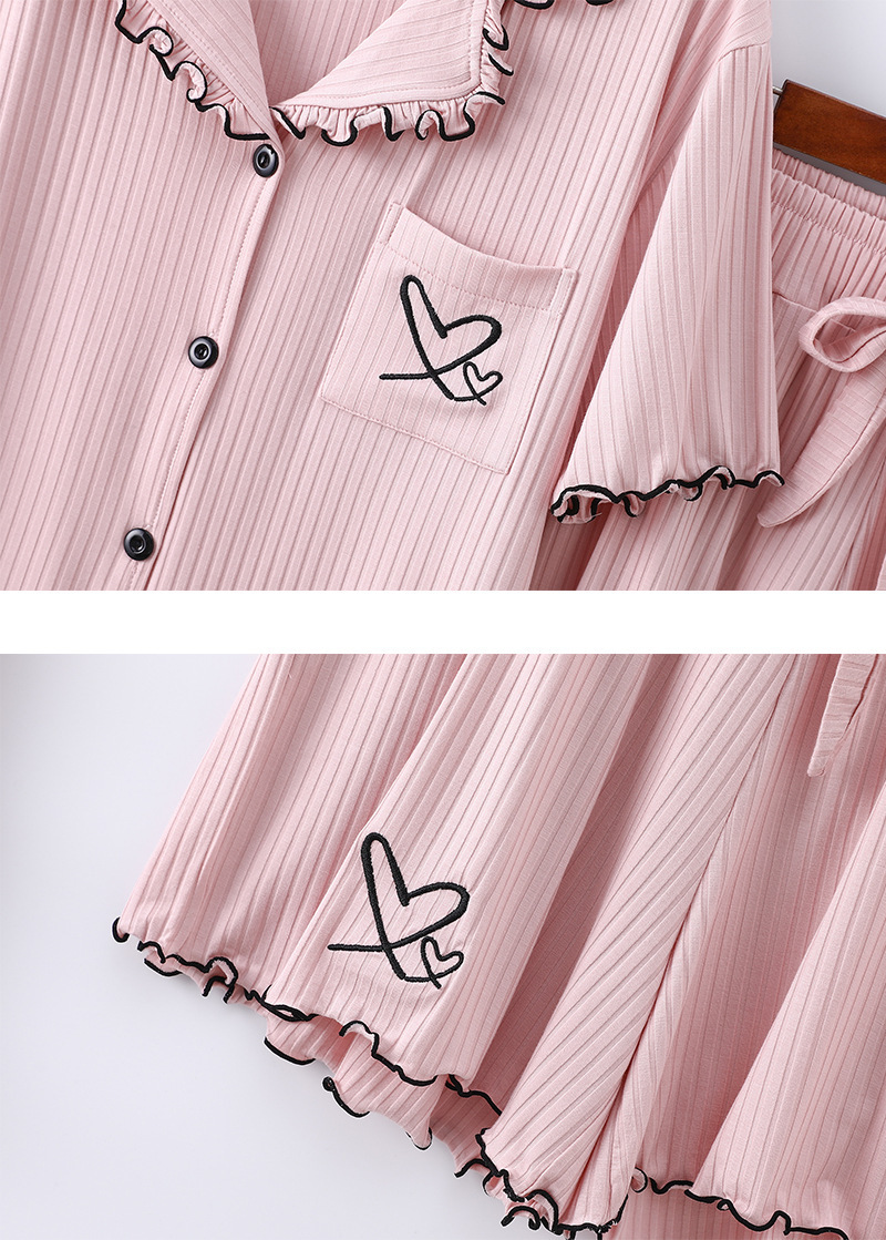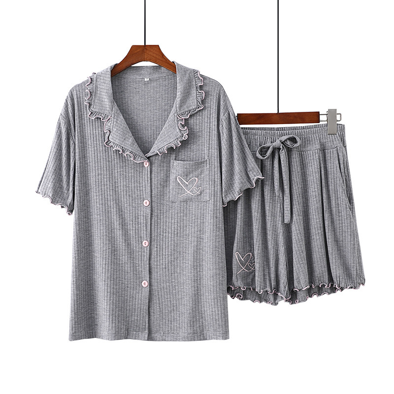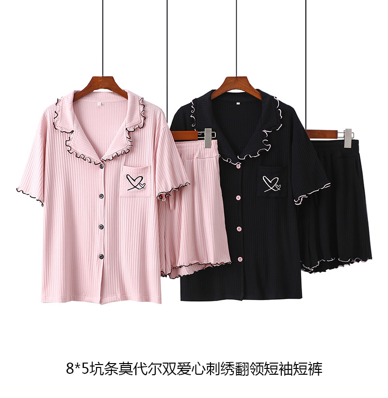 여름 잠옷 여성 8*5 피트 모달 반바지 짧은 소매 더블 사랑 자수 카디건 옷깃 홈 옷