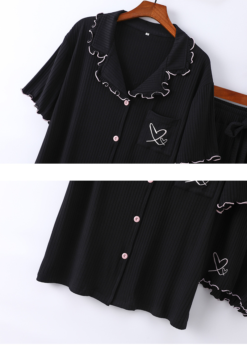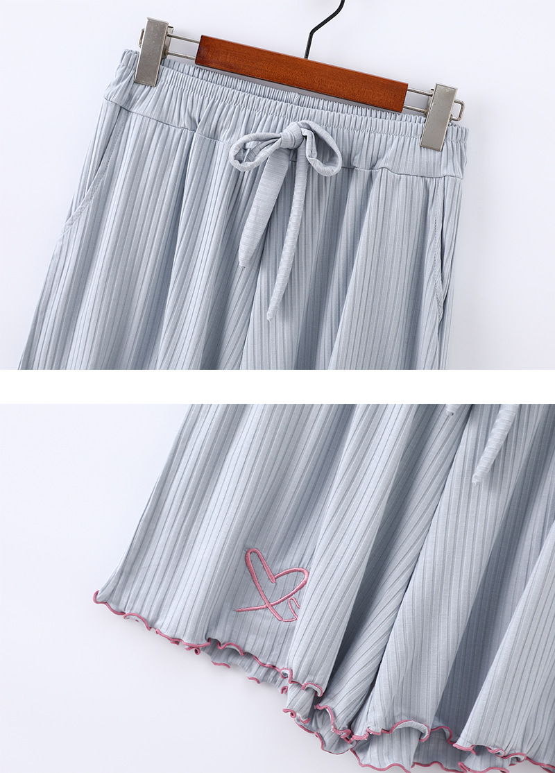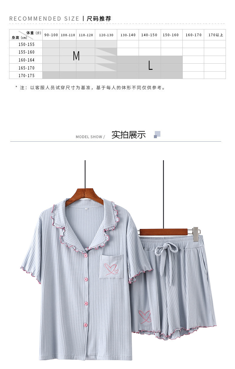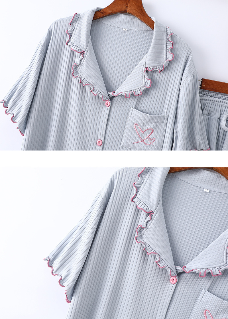 여름 잠옷 여성 8*5 피트 모달 반바지 짧은 소매 더블 사랑 자수 카디건 옷깃 홈 옷스토어 가기