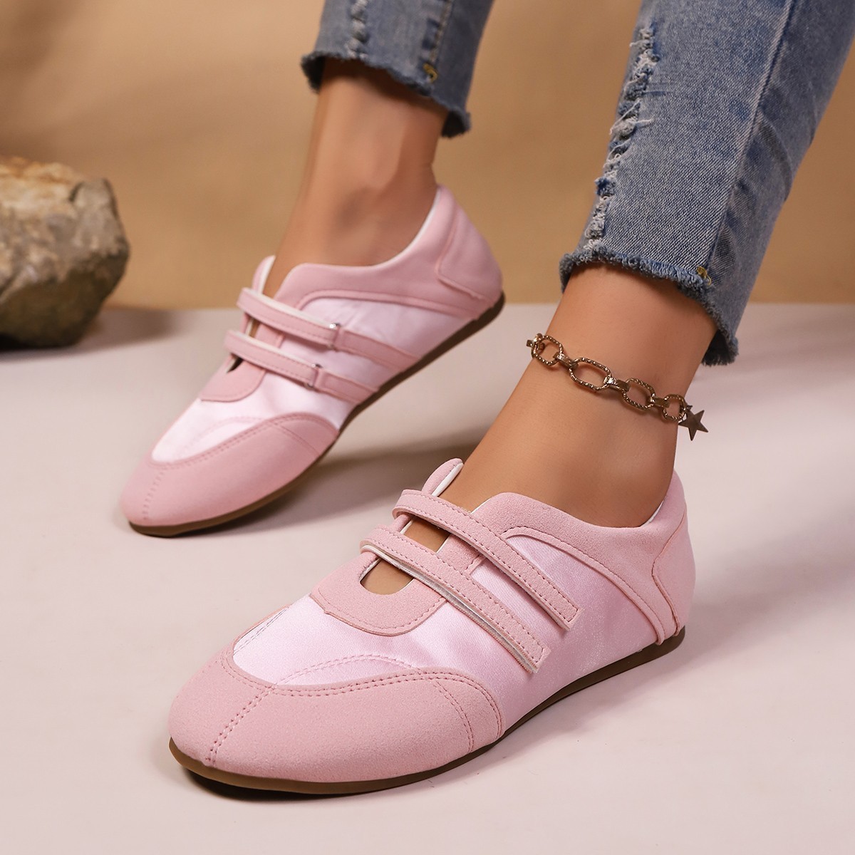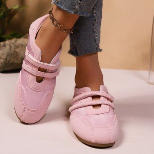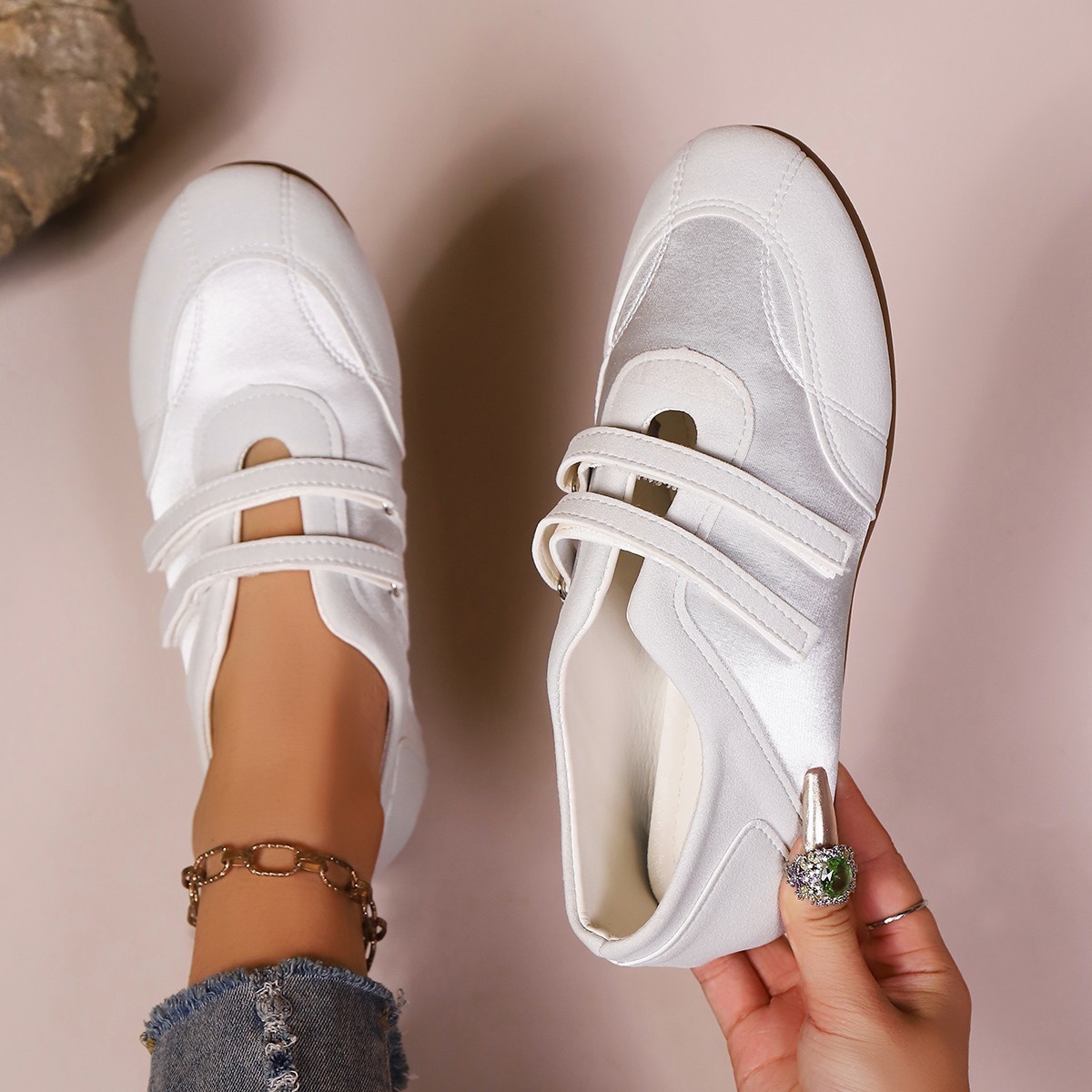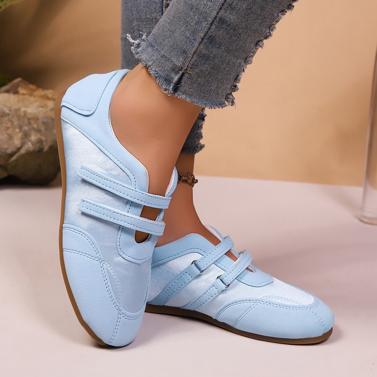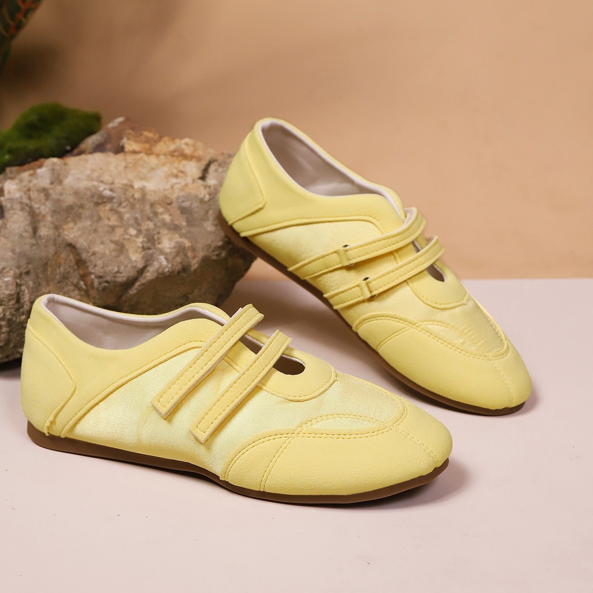 봄과 가을 새로운 플랫 레트로 얕은 메리 제인 신발 벨크로 프랑스 신발 라운드 발가락 신발 여성용 더블