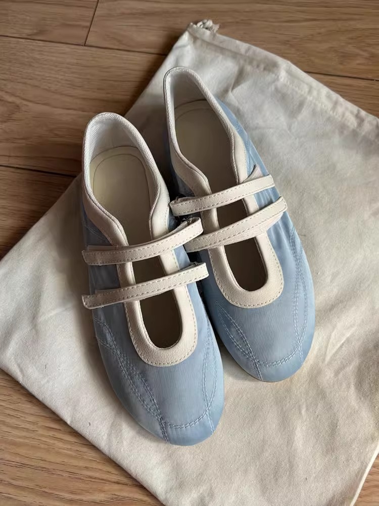 봄과 가을 새로운 플랫 레트로 얕은 메리 제인 신발 벨크로 프랑스 신발 라운드 발가락 신발 여성용 더블스토어 가기