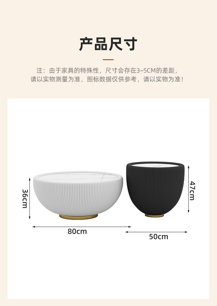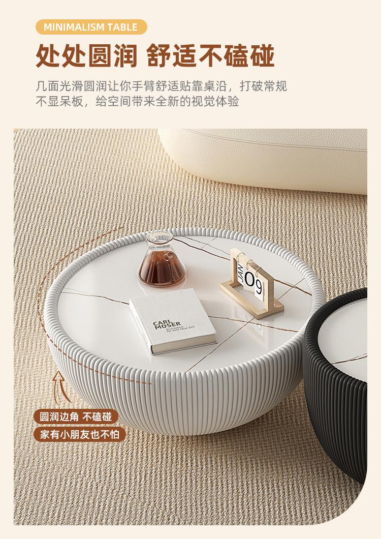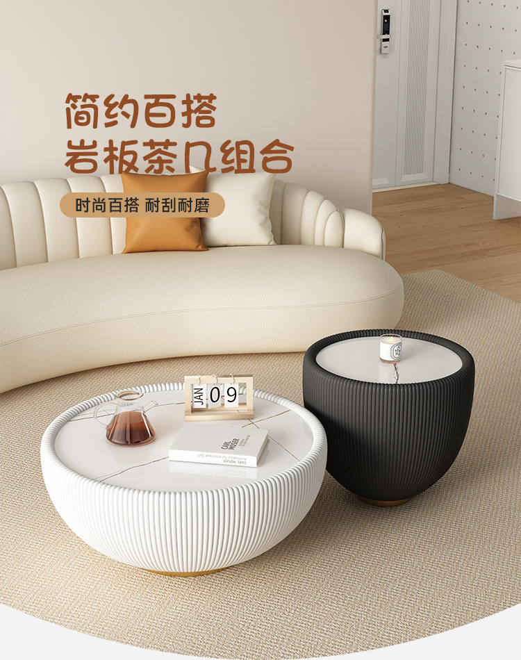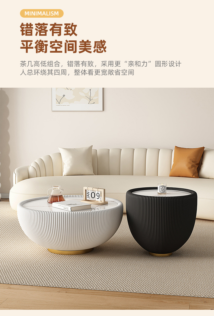인터넷 연예인 거실 작은 아파트 라이트 럭셔리 슬레이트 크림 스타일 커피 테이블 조합 크고 작은 그릇 크리 에이 티브 라운드 홈 사이드 테이블