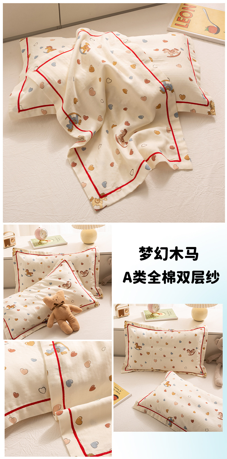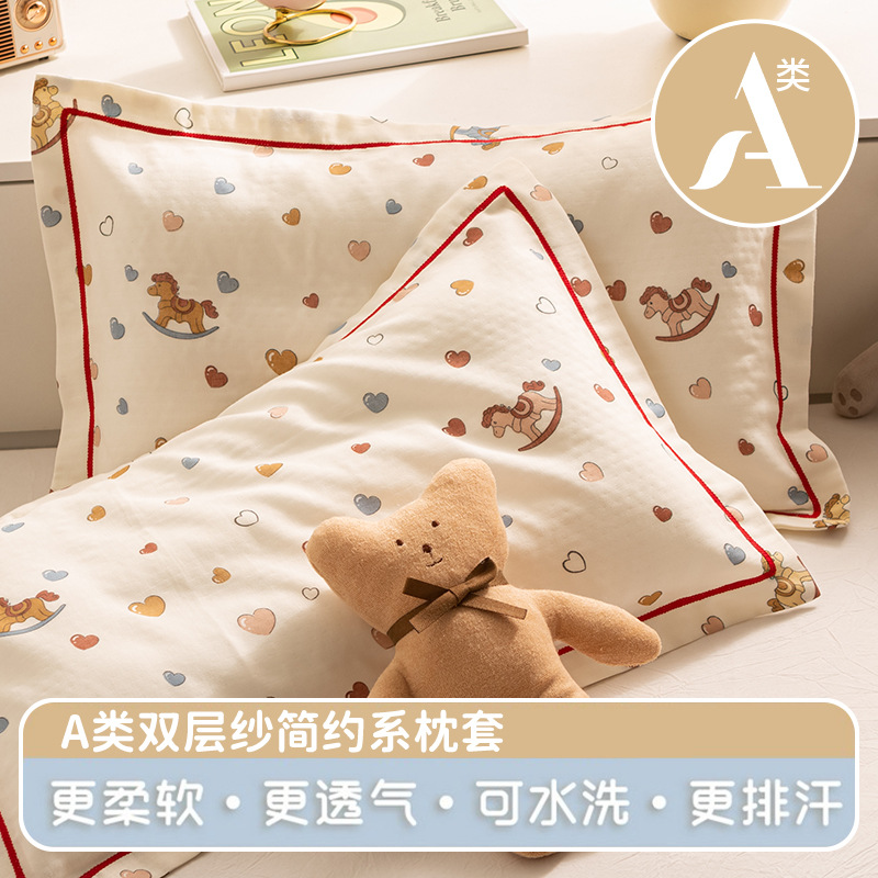새로운 클래스 A 면화 세척 이중 원사 만화 어린이 면화 베개 커버 봉투 베개 싱글 베개 커버 기숙사 도매스토어 가기